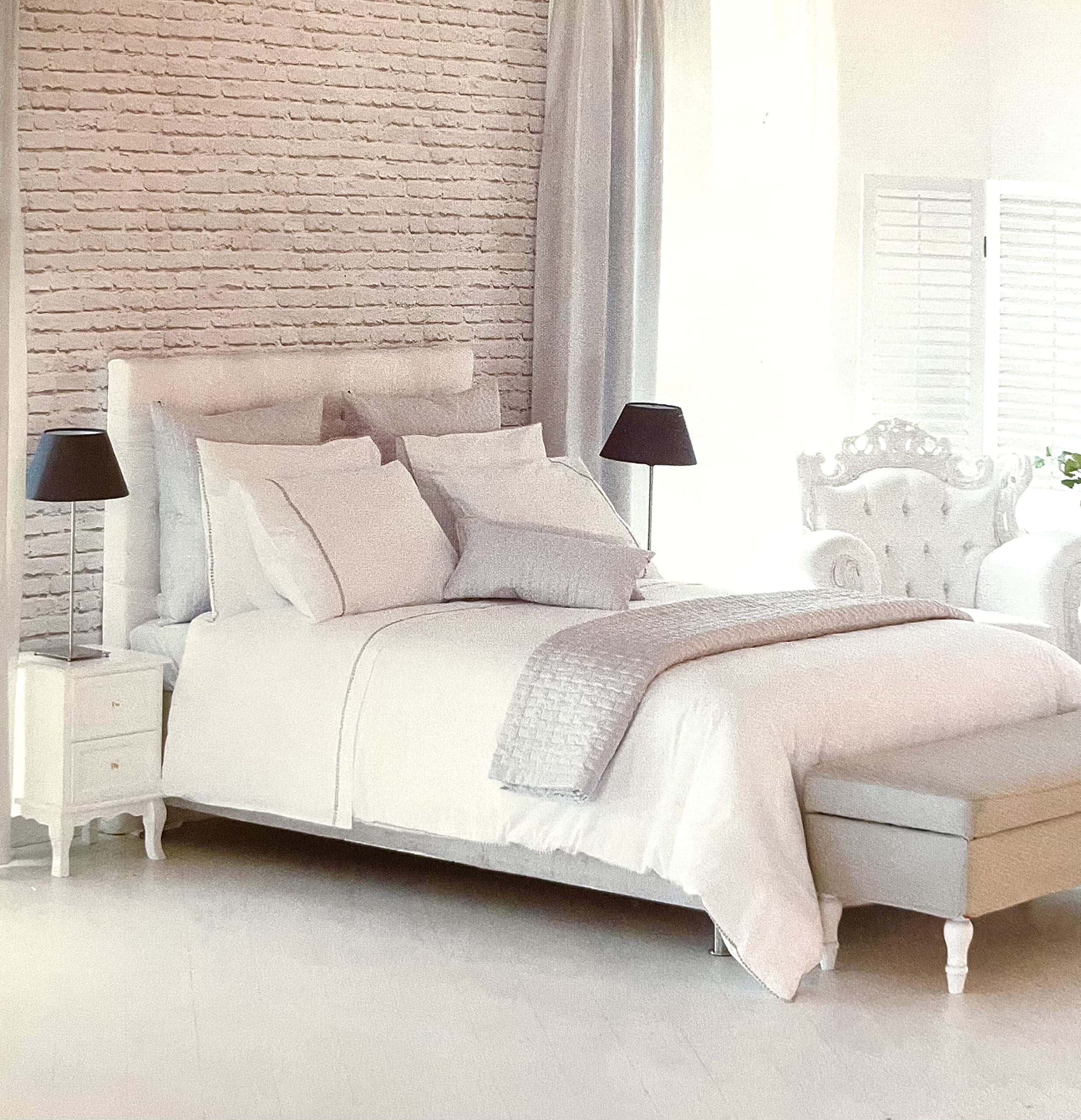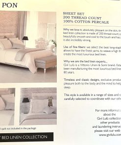 Este juego de sábanas de lujo Givi Lulu de 4 piezas es blanco sólido con múltiples patrones hermosos. La ropa de cama de diseño italiano de lujo de Givi Lulu es conocida por su excelente calidad y hermosos diseños. Este juego de ropa de cama es 100% de algodón, suave al tacto, transpirable y cómodo por la noche. El set incluye 1 sábana plana, 1 sábana ajustable y 2 fundas de almohada.