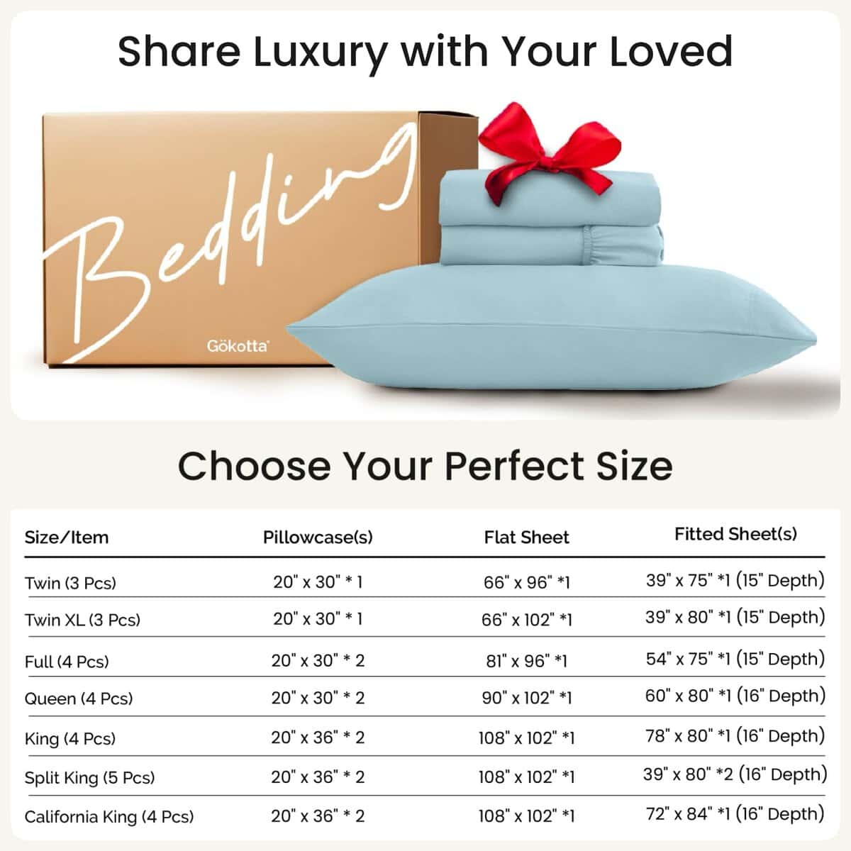 Juego de sábanas GOKOTTA de 3 piezas para cama individual,