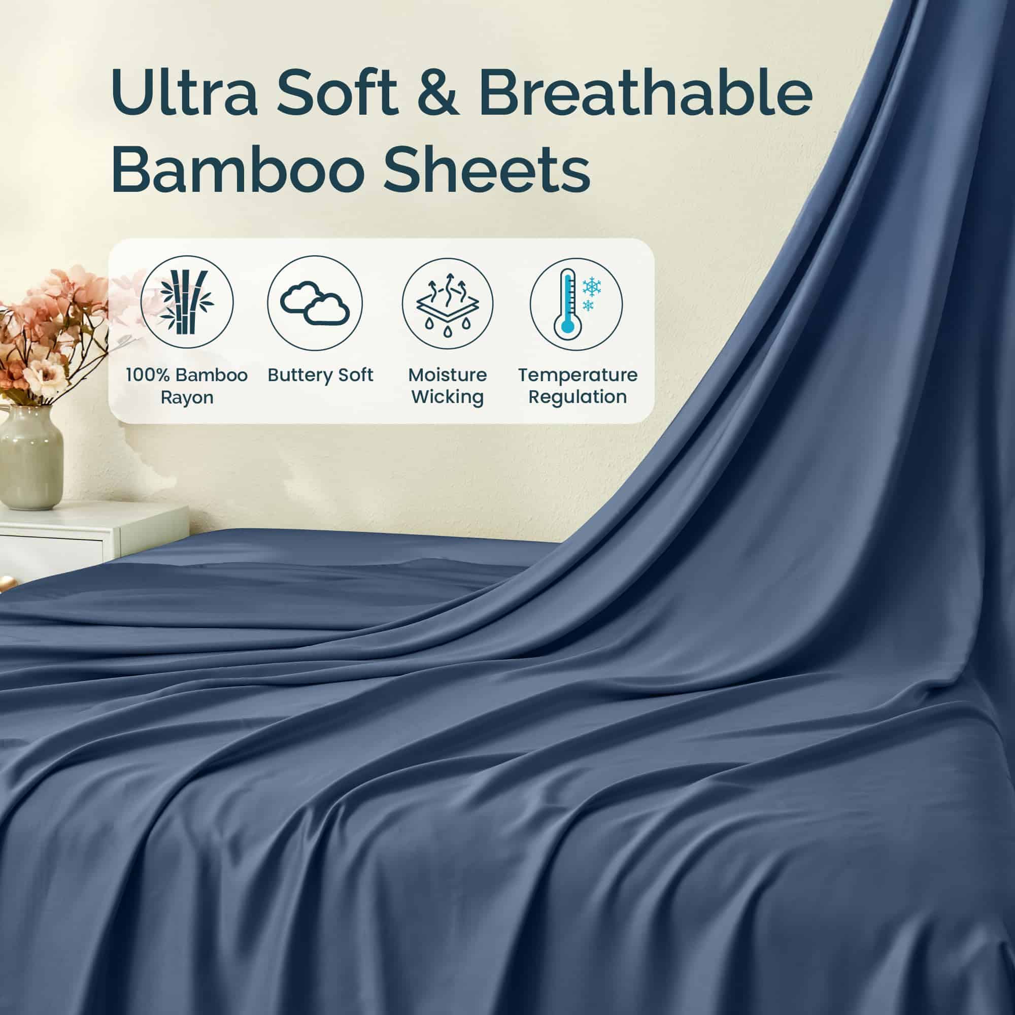 2. REDEFINE TU SUEÑO – Experimenta la comodidad y la frescura con nuestro juego de sábanas 100% Bamboo Rayon. Súper suaves, sedosas y transpirables, apoyan un sueño tranquilo como ningún otro.
