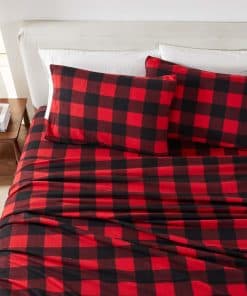 2. Estilosas y acogedoras: Con un patrón clásico a cuadros, estas sábanas agregarán un toque de estilo a tu juego de ropa de cama. Con colores temáticos de invierno y un patrón versátil, estas complementarán la estética de tu dormitorio.