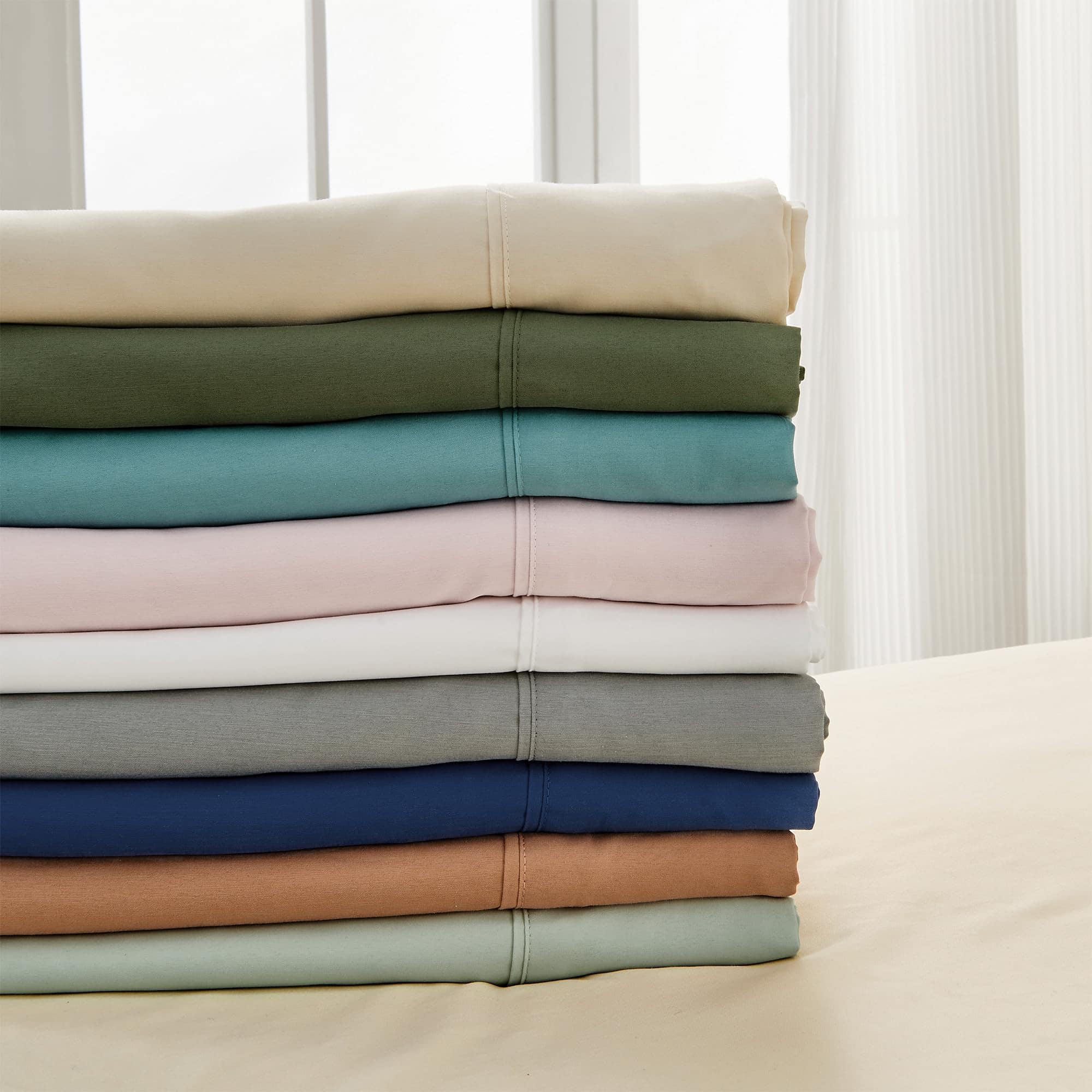 1. Colores sólidos inspirados en la tierra: Elige entre una variedad de hermosos colores resistentes a la decoloración inspirados en los tonos de la Tierra. Cada juego de sábanas suaves como la seda viene con 1 sábana ajustable, 1 sábana plana y 2 fundas de almohada (1 para tamaño Twin).