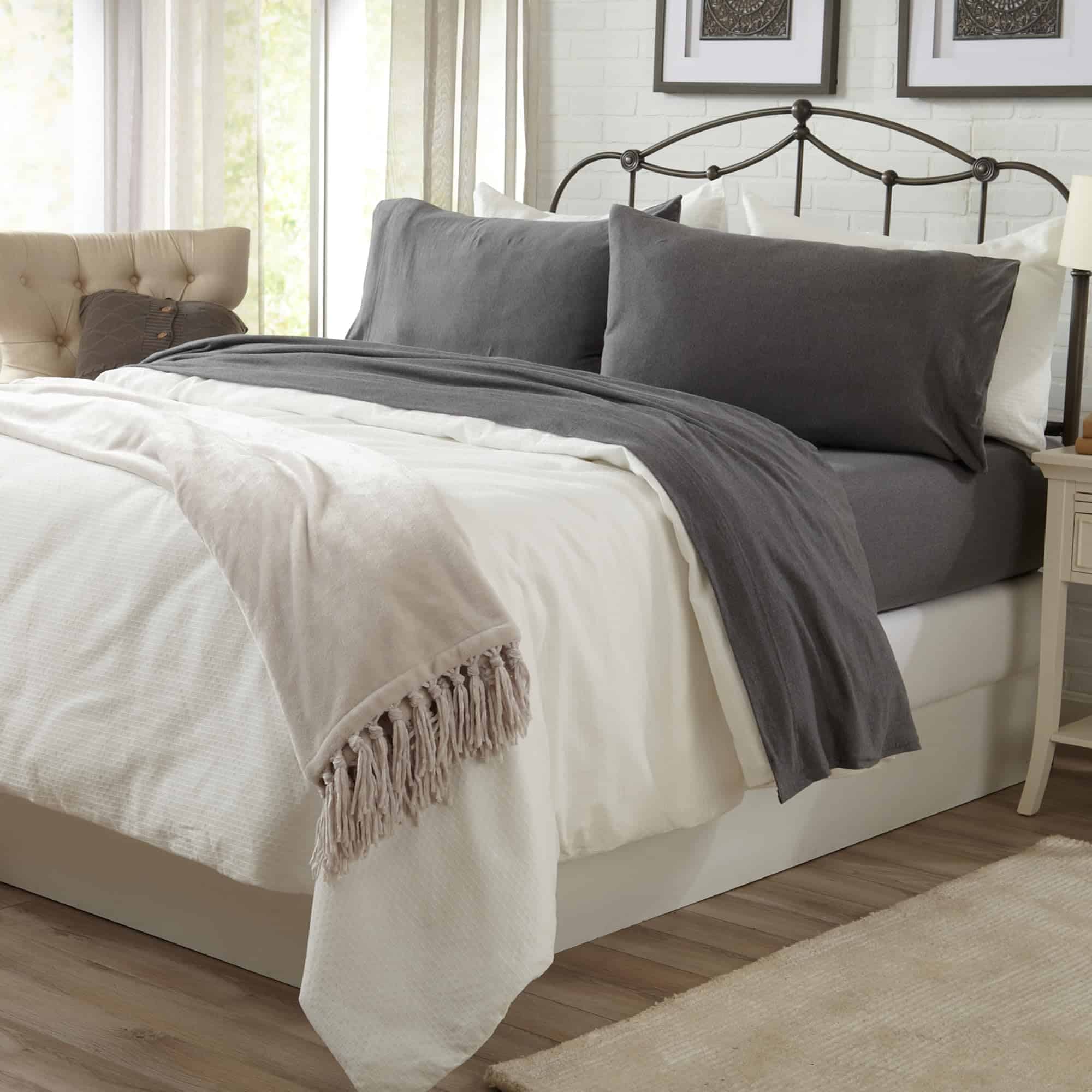 Juego de Sábanas Grises de Mezcla de Algodón para Cama