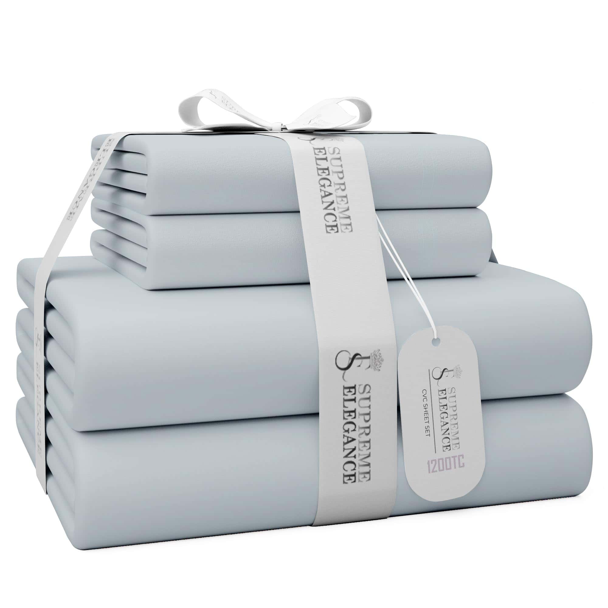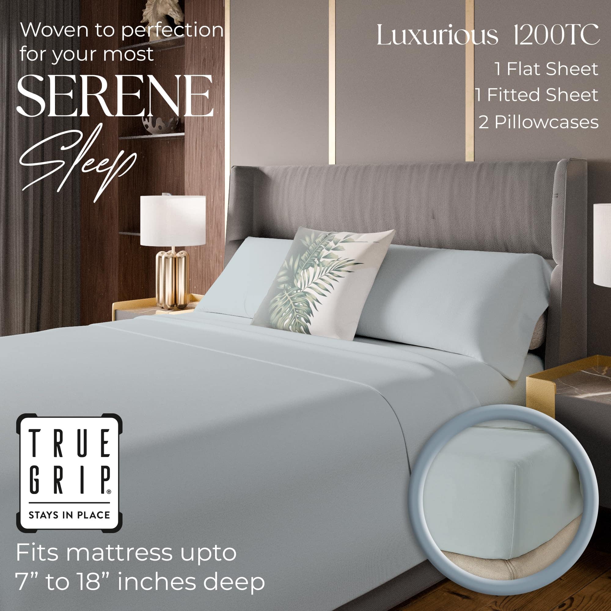 Juego de sábanas grises suaves de 1200 hilos de algodón,