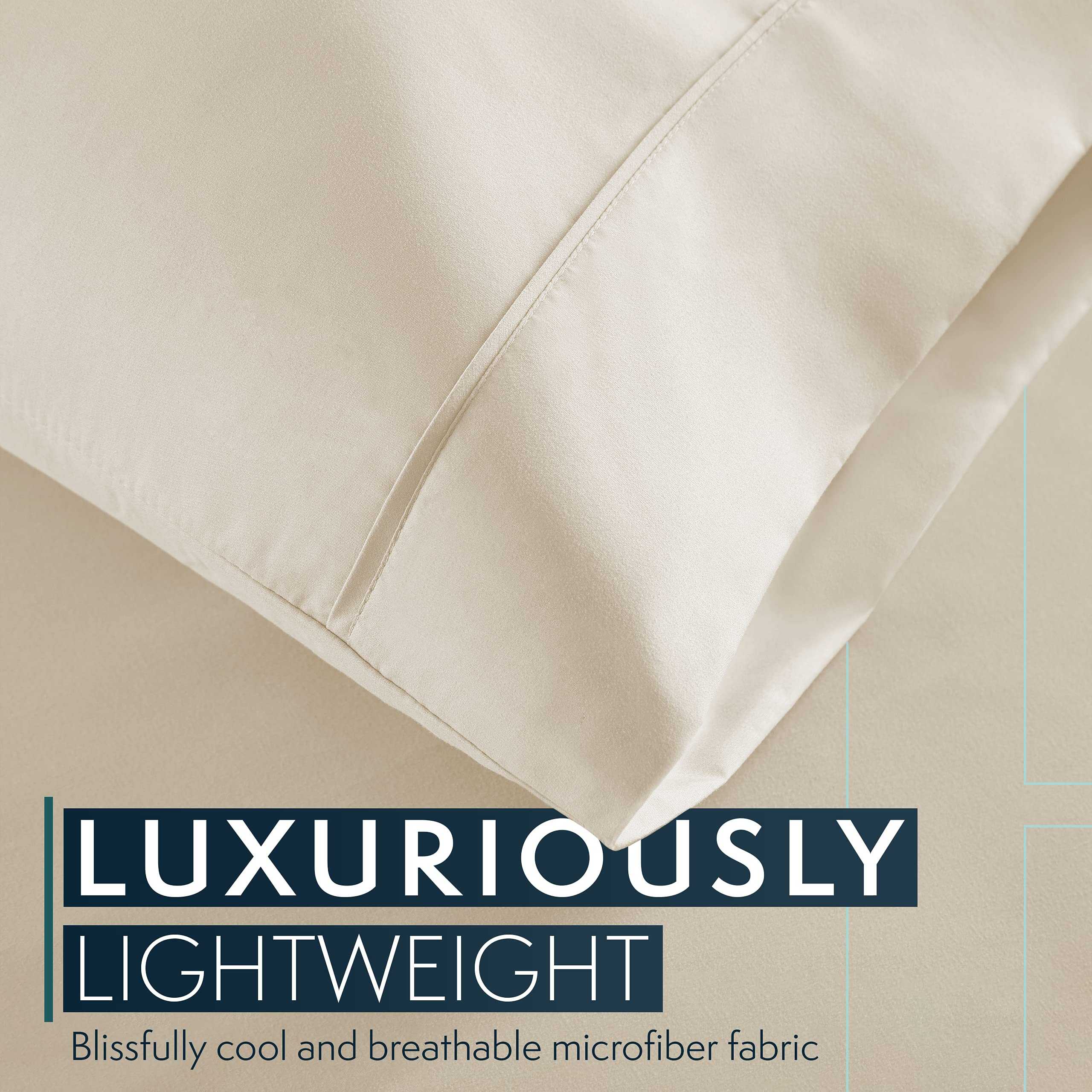 1. Juego completo: Nuestro juego de sábanas y fundas de almohada tiene todo lo que necesitas – (2) 20″x30″ fundas de almohada, (1) sábana plana de 102″x90″, y (1) sábana ajustable de 80″x60″ con bolsillos profundos que se ajustan hasta 16 pulgadas.