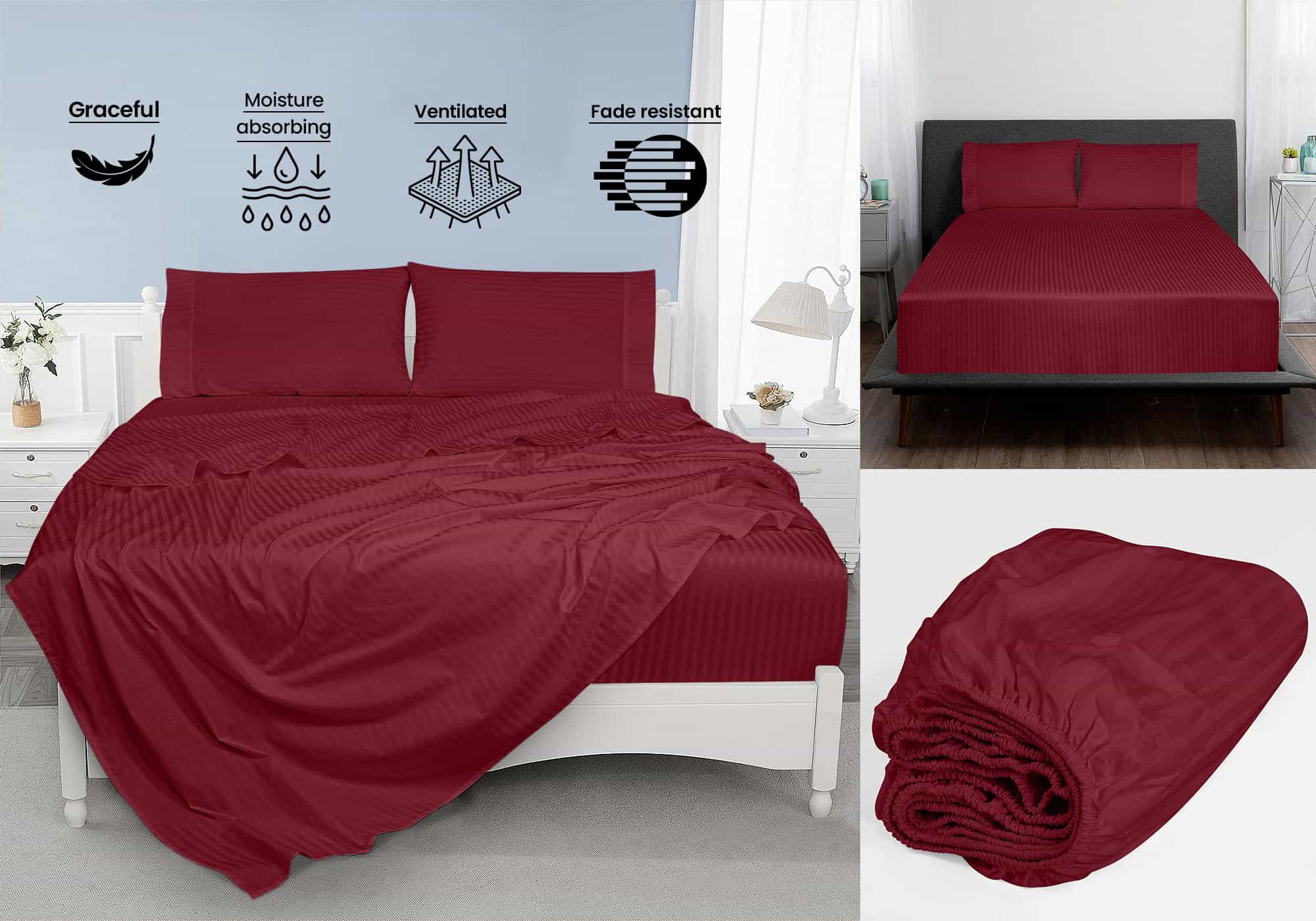2. JUEGO DE SÁBANAS DE 300 HILOS 4 PIEZAS: Este juego de sábanas queen de 300 hilos de algodón 100% incluye: 1 sábana plana de 90X102 pulgadas, 1 sábana ajustable de 60X80 pulgadas con caída de 16 pulgadas y 2 fundas de almohada de 20X30 pulgadas con dobladillo de 4 pulgadas y cierre de sobre.
