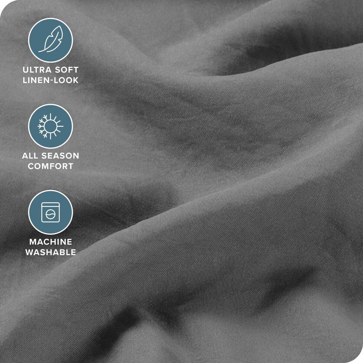 3. CUIDADO FÁCIL, RESISTENTE A LAS MANCHAS: Simplemente coloca tus sábanas completas en la lavadora. Lava en agua fría con colores similares, seca a baja temperatura y retira prontamente. La tela parecerá texturizada con arrugas ligeras debido al proceso de acabado. Planchar tibia si es necesario.