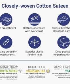 Despierta renovado en todas las estaciones con nuestras lujosas sábanas de satén de algodón 100% de 400 hilos certificados, suaves y frescas. Perfectamente dimensionado con bolsillo profundo, nuestras sábanas de algodón son duraderas, fáciles de cuidar y beneficiosas para la salud. Promueven la regulación natural de la temperatura y un mejor funcionamiento diurno. Nos comprometemos a la calidad y la sostenibilidad, donando productos a organizaciones benéficas y produciendo en nuestra fábrica familiar en India.