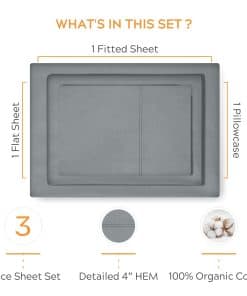 5. EMPAQUE ECOLÓGICO Y GARANTÍA DE SATISFACCIÓN – Mima a tus seres queridos con sábanas de algodón puro orgánico que vienen en un elegante empaque reciclable. Cumpleaños, Navidad o Día de San Valentín – este regalo de lujo y consciente del medio ambiente es único y atento. Si por alguna razón no les gusta el regalo, pueden devolverlo en un plazo de 30 días.