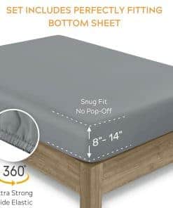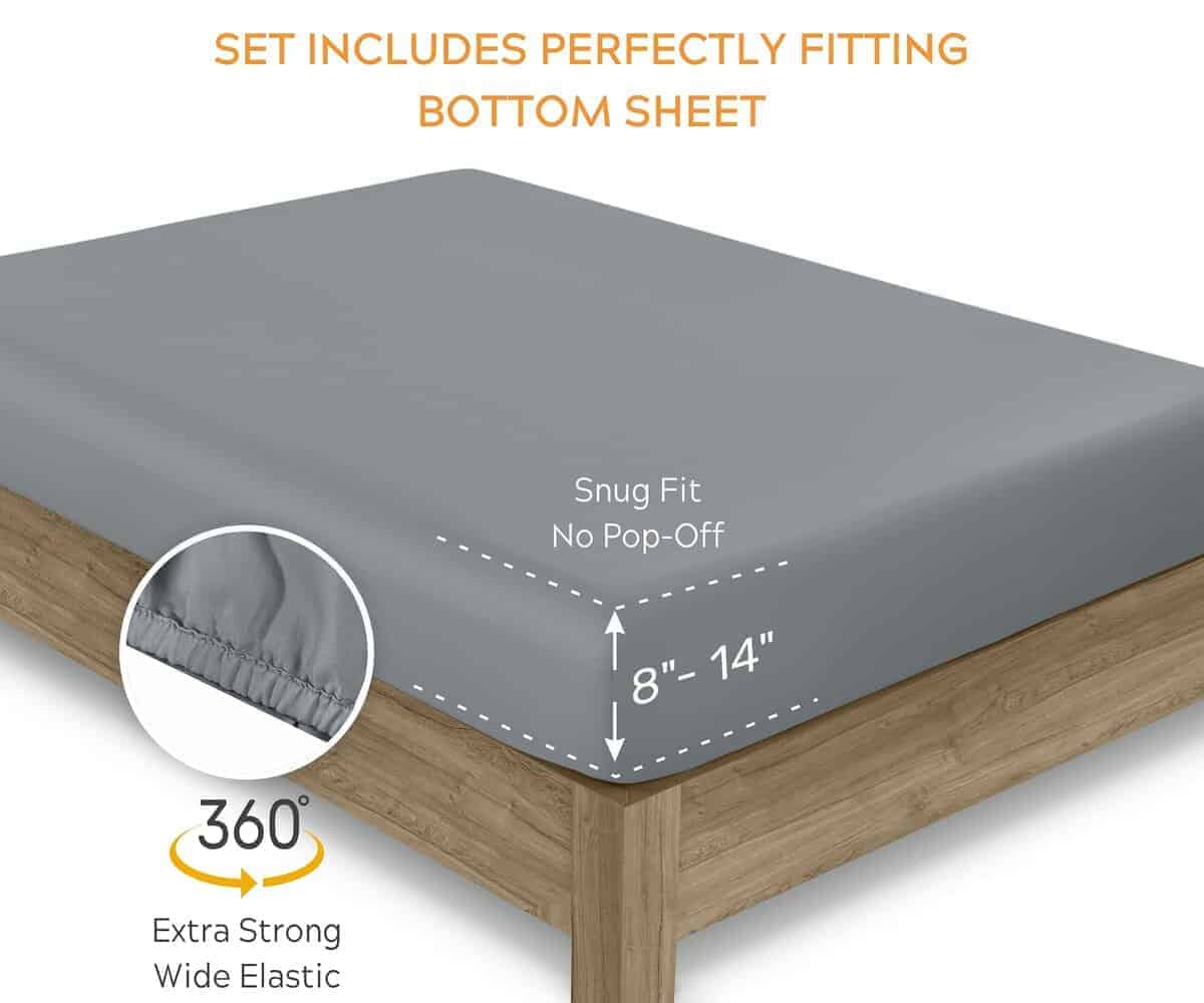 2. SUMÉRGETE EN SÁBANAS COOL Y AÉREAS DE PERCAL – Frescas y crujientes al tacto, una colección liviana que te mantiene fresco en el verano, a diferencia de las pesadas sábanas de algodón egipcio o satén. El juego Twin Gris oscuro incluye 1 sábana plana 66″ W x 100″ L, 1 sábana ajustable elástica (39″ W x 75″ L + 14″ bolsillo profundo) y 1 funda de almohada estándar (21″ W x 30″ L). Nuestra sábana ajustable tiene un ajuste extra ajustado y cuenta con etiquetas de cabeza/pie para facilitar su uso. El patrón de dobladillo de contraste agrega un acabado elegante al juego de habitación.