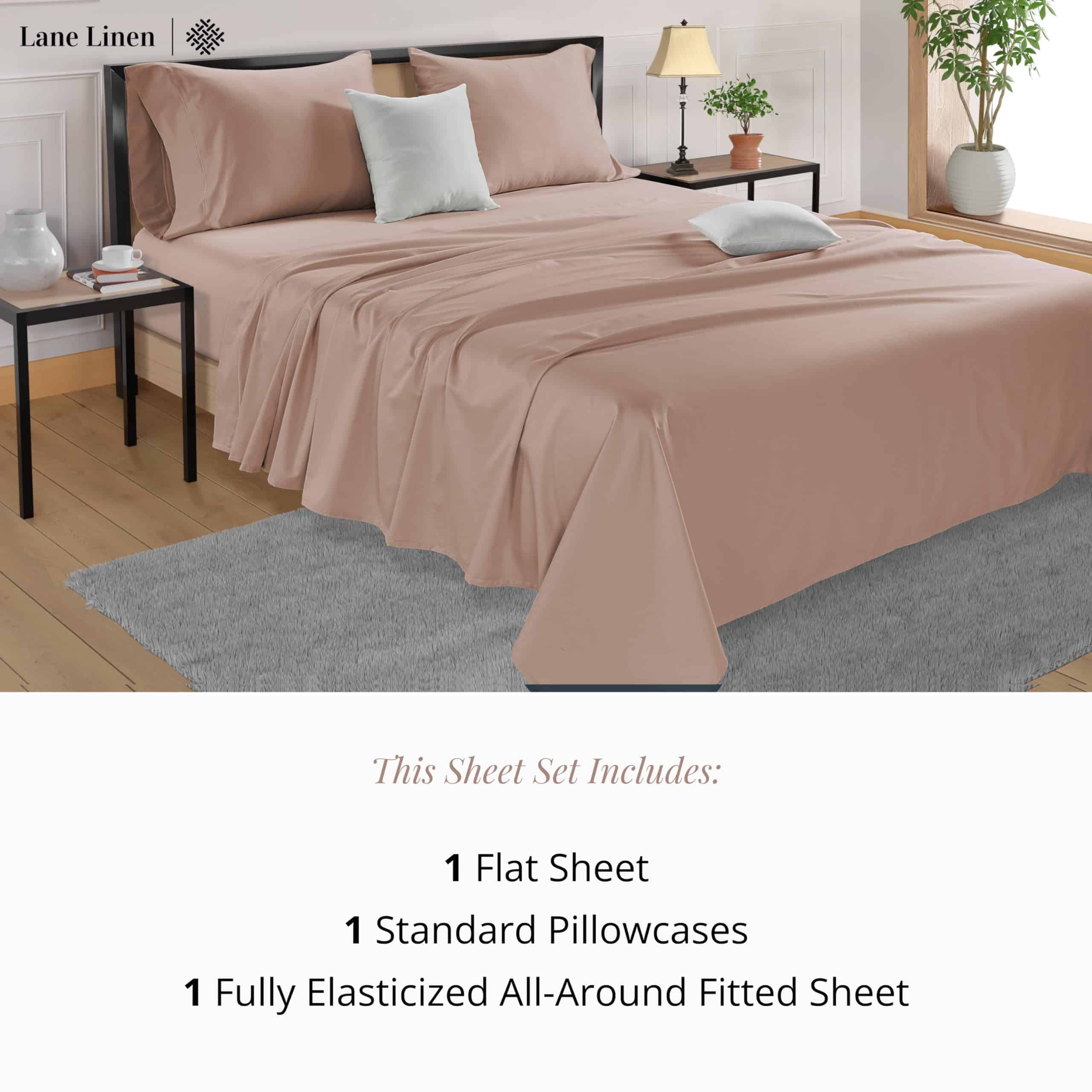Lane Linen le ofrece este juego de sábanas individuales de 600 hilos 100% algodón mercerizado en un hermoso color rosa viejo. Las sábanas son de alta calidad y proporcionan un confort excepcional durante todo el año. El juego incluye una sábana ajustable individual con bolsillos profundos de 15″, una sábana plana individual y una funda de almohada estándar. Las sábanas son resistentes al desgaste, fáciles de cuidar y certificadas estándar 100 por OEKO TEX. Ideal para uso diario o como regalo para sus seres queridos. Experimente el lujo de la colección de sábanas de hotel de Lane Linen en su hogar. Lavable a máquina y secado en secadora para una fácil limpieza. Disponible en varios colores y tamaños para adaptarse a cualquier decoración de dormitorio. ¡Ordene ahora y disfrute de sábanas de alta calidad y confort inigualable!