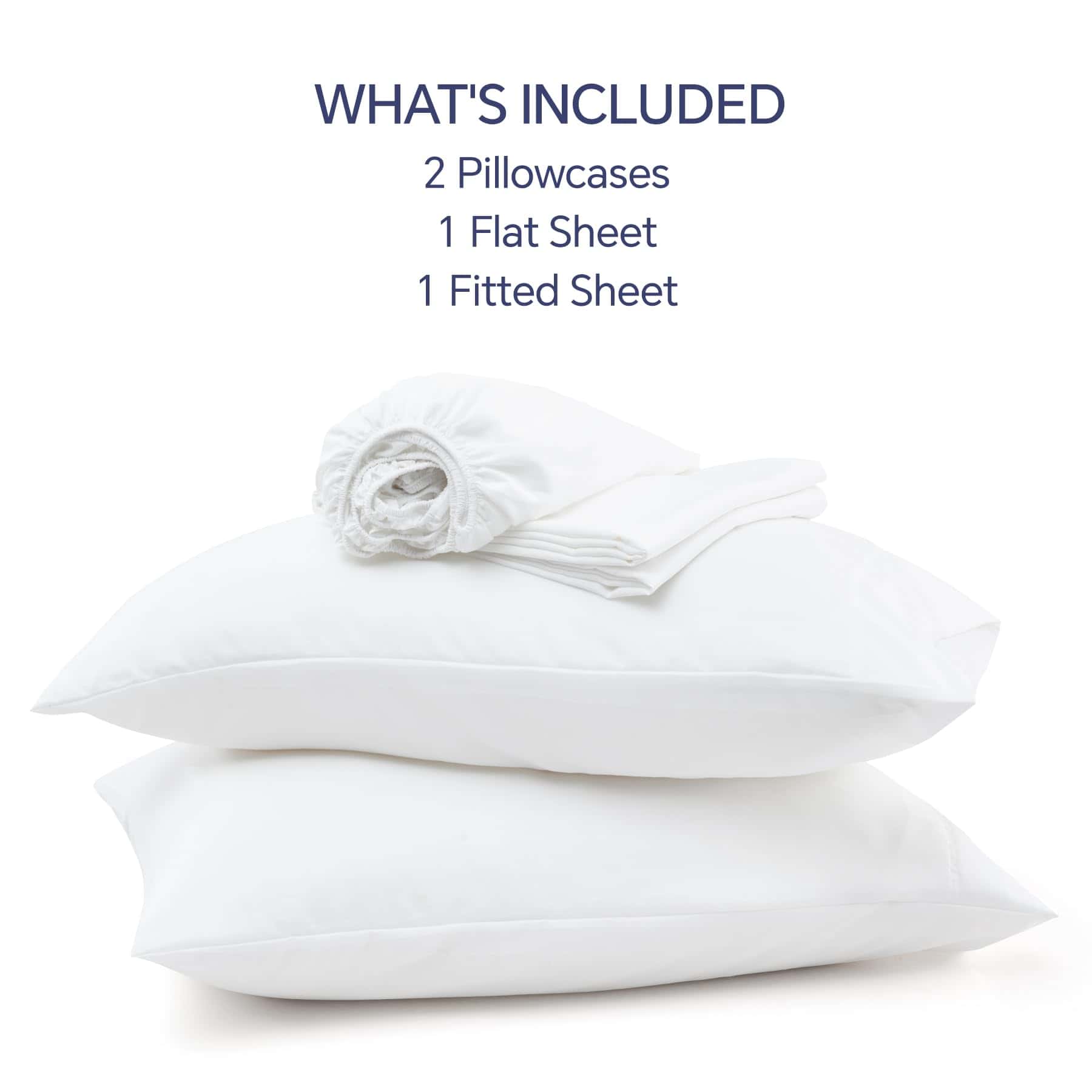5. Lo que Obtienes: Este juego de sábanas Twin incluye una Funda de Almohada (20″ x 30″), una Sábana Plana (66″ x 96″) y una Sábana Ajustable (39″ x 75″)