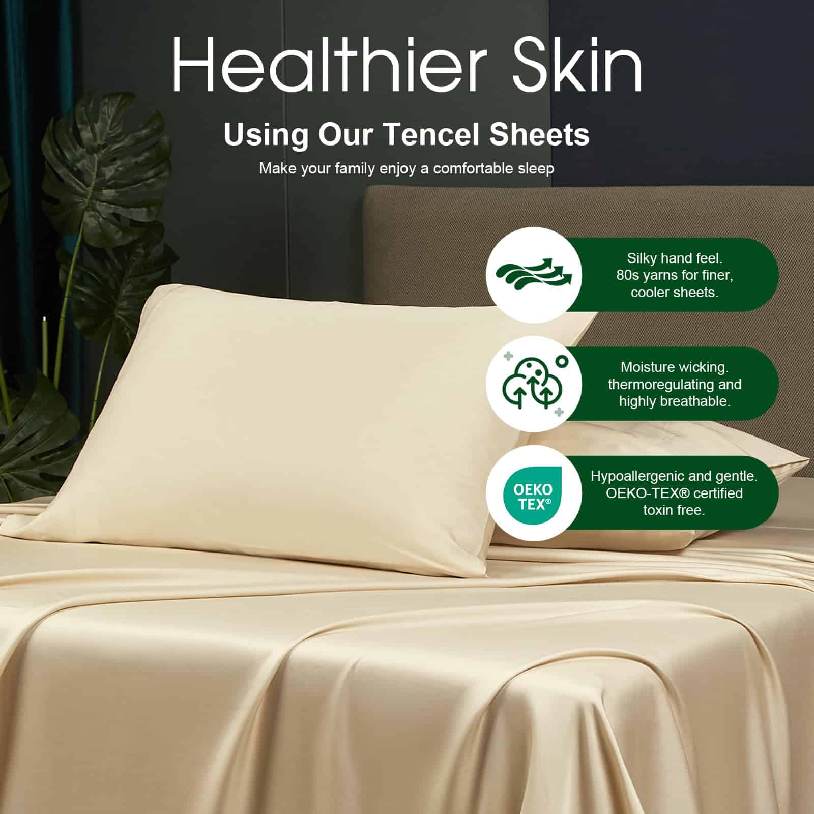 Juego de sábanas Ivellow 100% Tencel Eucalyptus Lyocell,