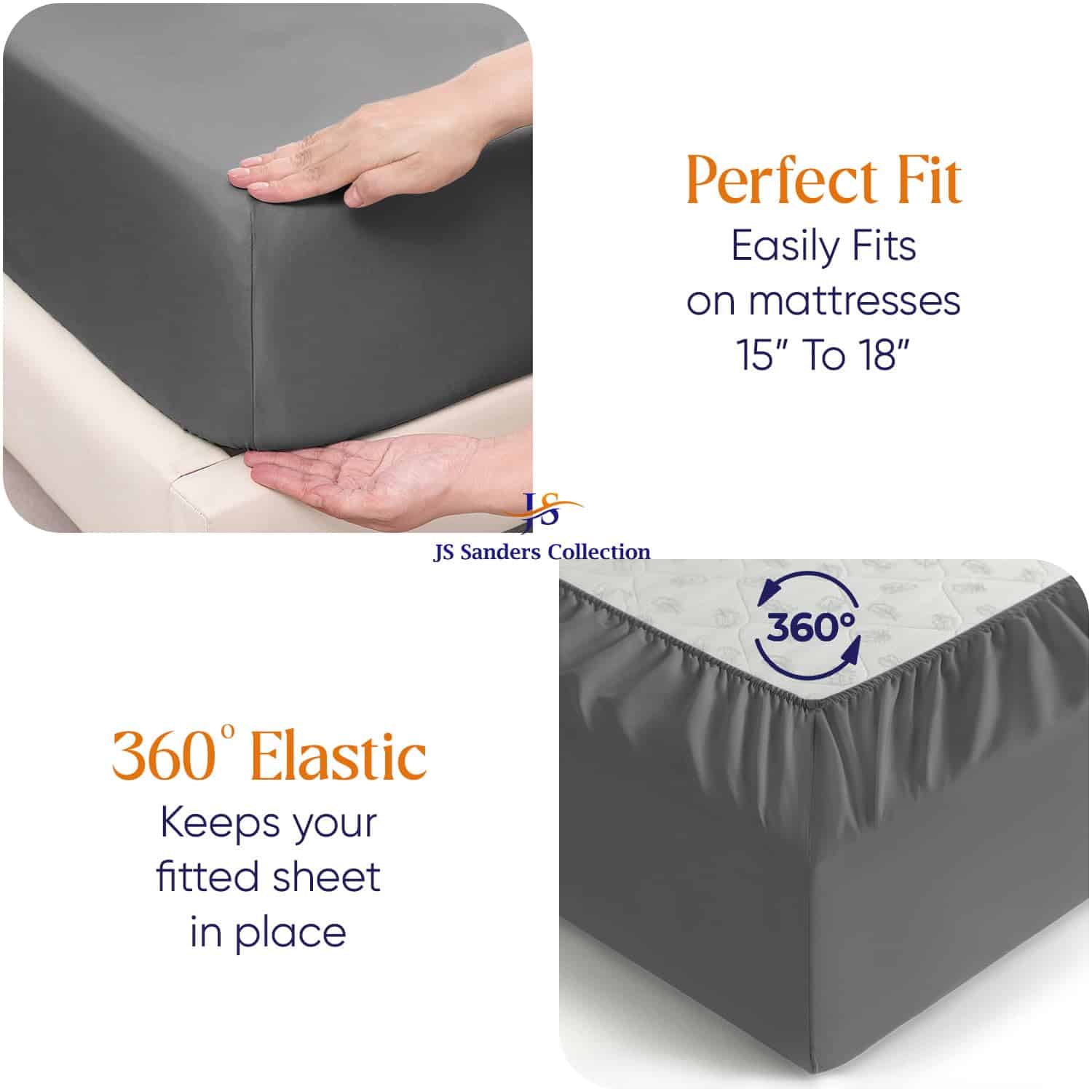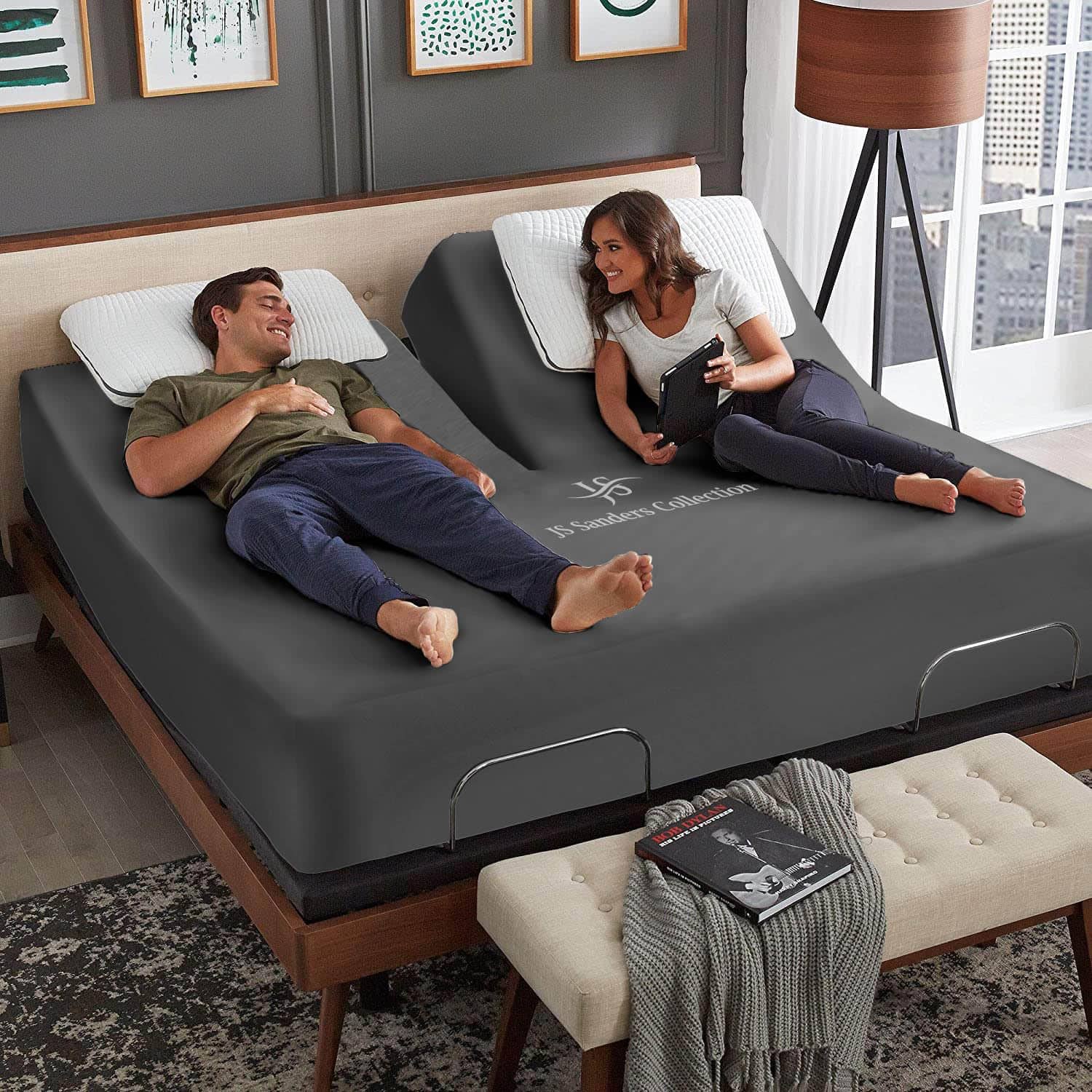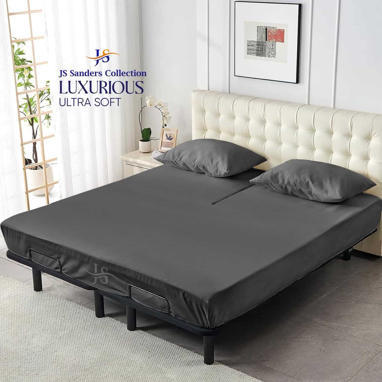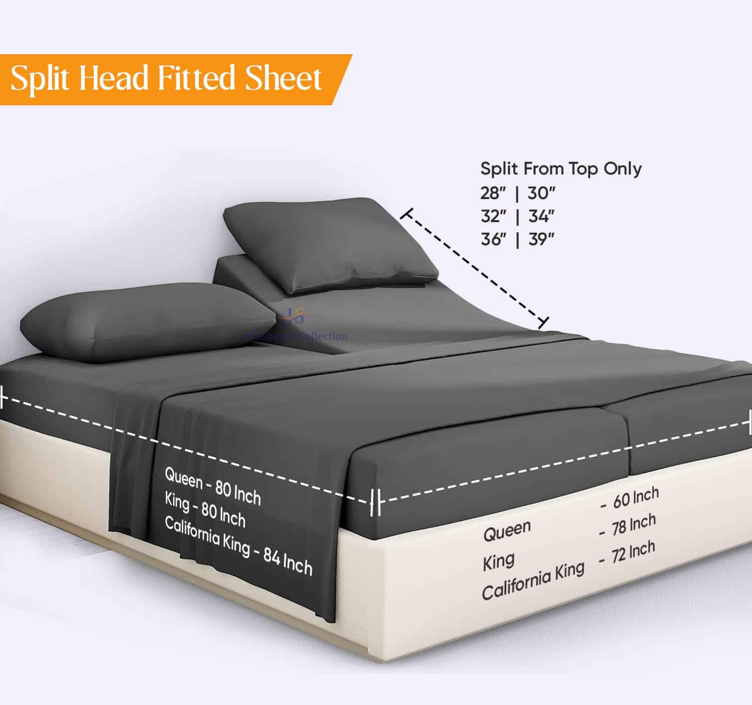 2. 1 Sábana Ajustable Flex Cal-King con Cabeza Dividida: 72″ x 84″, dividida 34″ desde la parte superior, 1 Sábana Plana Cal-King: 108″ x 102″, 2 Fundas de Almohada King: 20″ x 40″. 3. ELÁSTICO EN TODA LA SÁBANA: La sábana ajustable con cabeza dividida tiene elástico en toda la sábana para sujetar y ajustar el colchón mejor y mantenerlo en su lugar toda la noche. 4. SÁBANAS ULTRA SUAVES: Nuestro tejido de algodón del juego de sábanas ajustables es ultra suave, ligero y aireado para mantenerte cálido en el invierno y fresco en el verano. Disponible en una amplia gama de colores para complementar cualquier dormitorio. Completa tu look de cama con productos adicionales de alta calidad de JS Sanders Collection. 5. FÁCIL CUIDADO: El juego de sábanas ajustables se puede lavar a máquina en frío en ciclo suave, y secar a baja temperatura. El juego de sábanas soporta decoloraciones, manchas y arrugas.