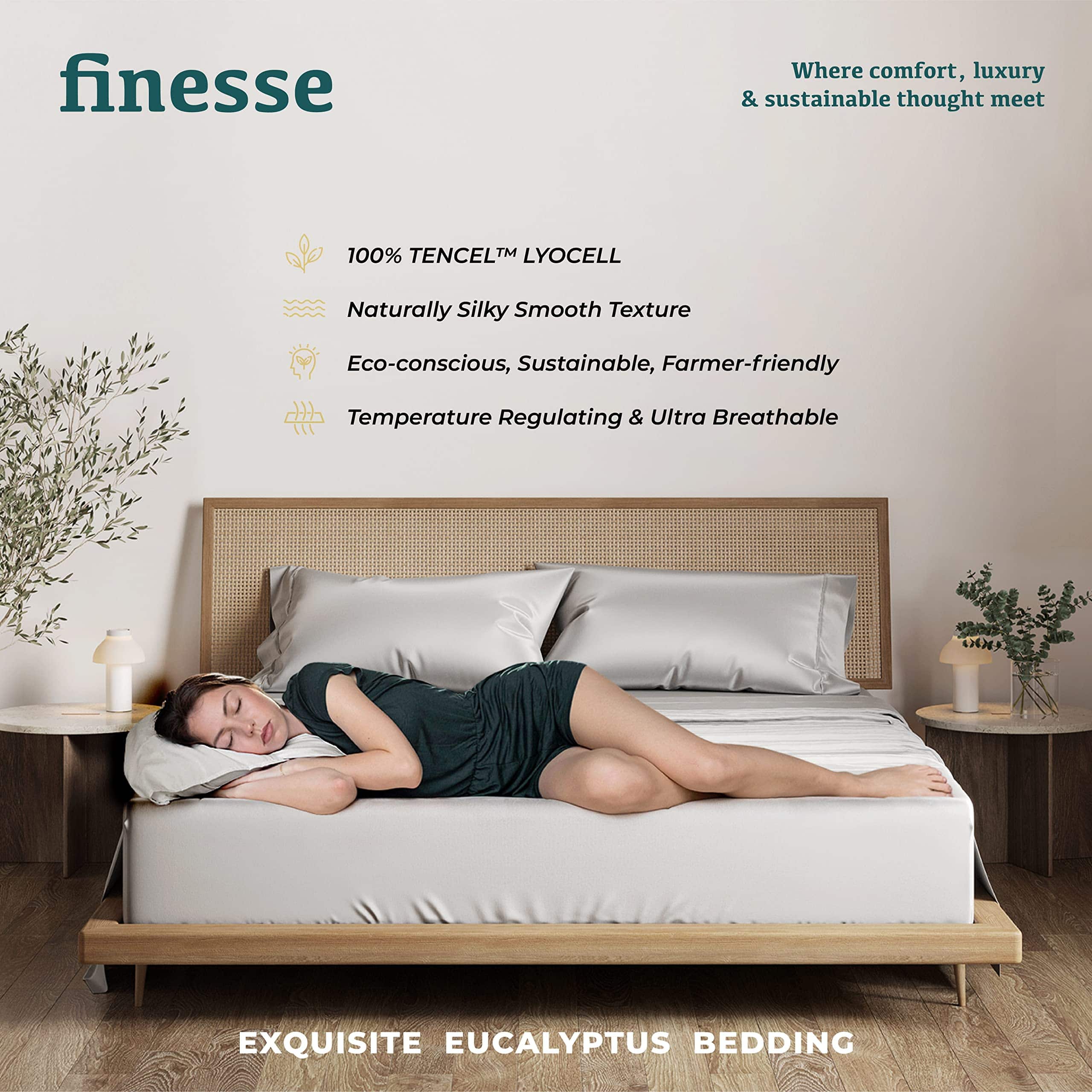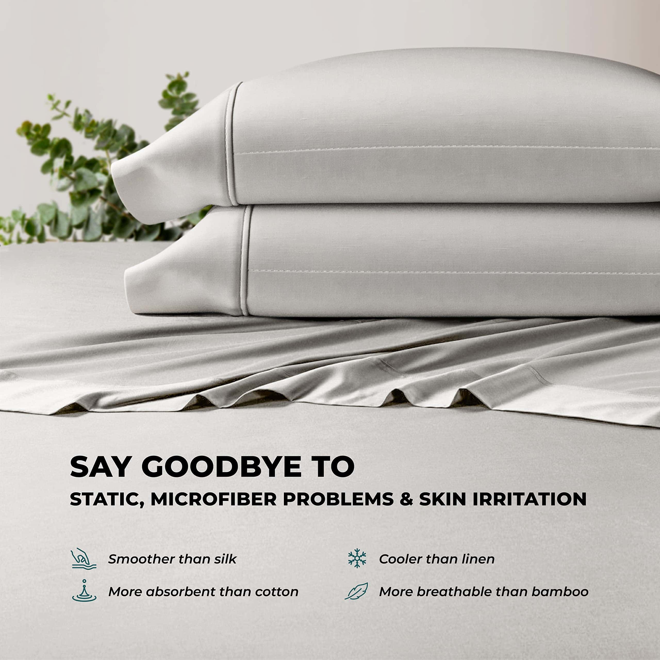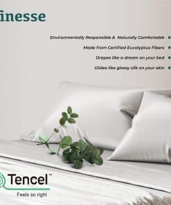 5. Sábanas de Eucalipto Elaboradas con Cuidado: Disfruta de un sueño lujoso y sin culpabilidad con nuestras sábanas de tencel lyocell, diseñadas para la comodidad y la sostenibilidad. El material suave y cómodo del juego de sábanas king size refrigerantes es una excelente elección para aquellos que buscan las mejores sábanas refrigerantes para durmientes calurosos