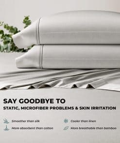 1. Comodidad Refrescante Mejorada con Sábanas TENCEL Lyocell: Estas sábanas de tencel king size ofrecen un ambiente fresco y confortable para dormir, ideal para aquellos propensos a sudar por la noche o que viven en áreas húmedas. Estas sábanas cuentan con propiedades que absorben la humedad para mantenerte fresco durante toda la noche. Como las mejores sábanas suaves refrigerantes para durmientes calurosos, aseguran que te mantengas fresco y cómodo.