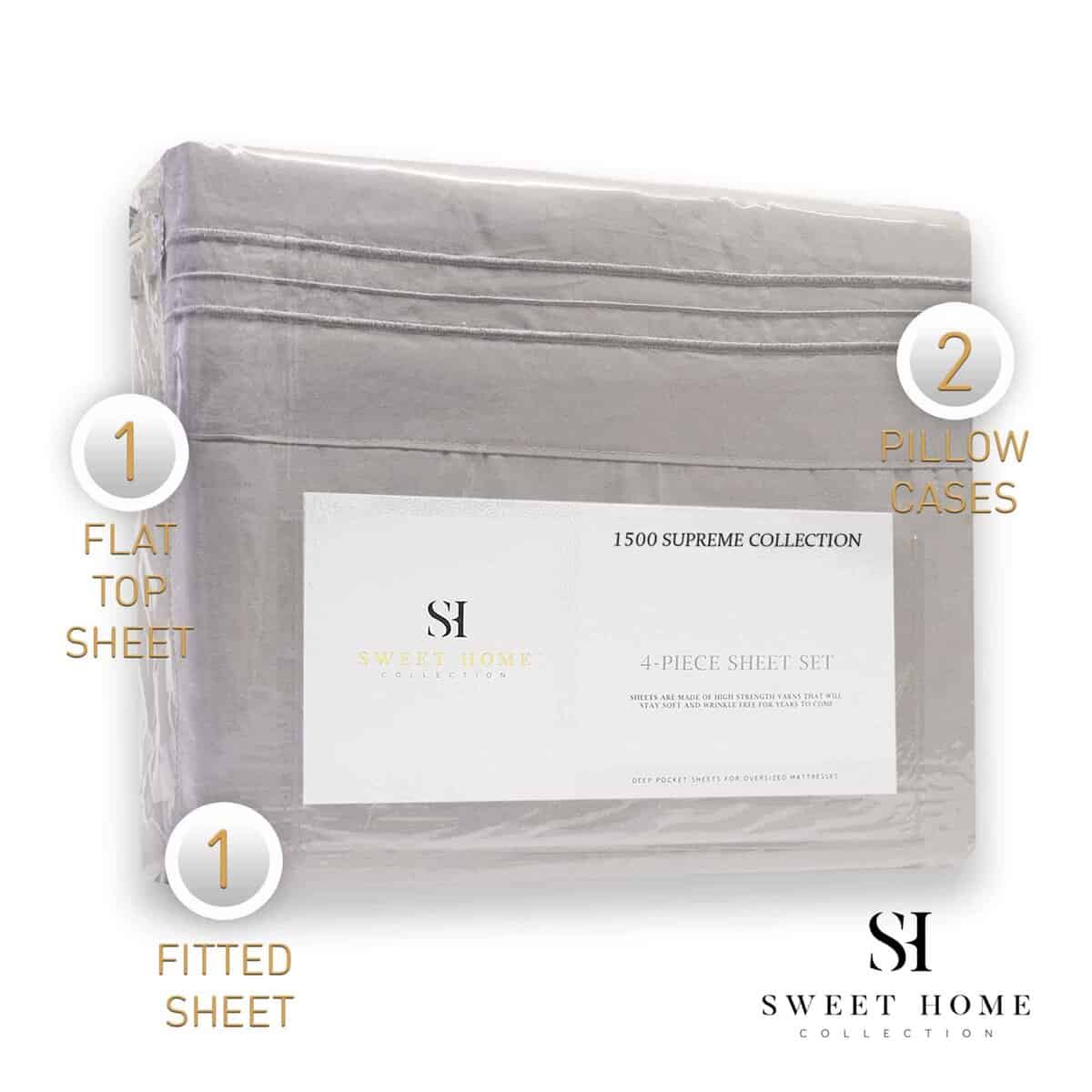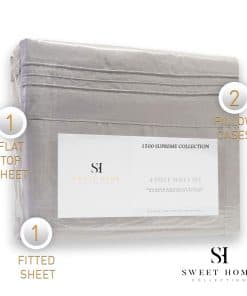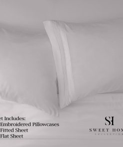 Queen: 1 Sábana Plana (92″ x 102″), 1 Sábana Ajustada (60″ x 80″), 2 Fundas de Almohada Estándar (20″ x 30″)