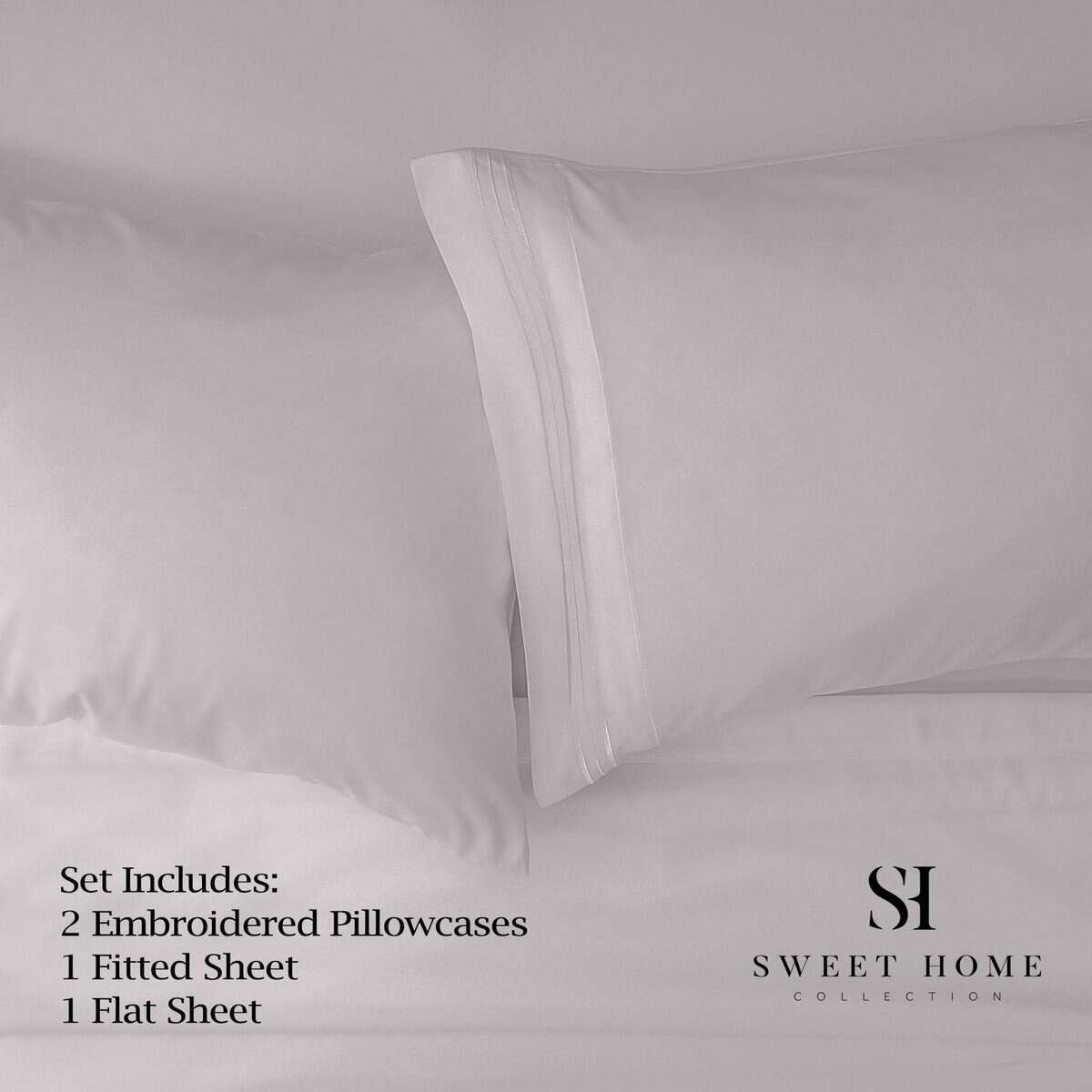 Split King: 1 Sábana Plana (102″x105″), 2 Sábanas Ajustadas (39″x80″), 2 Fundas de Almohada King (20″x40″)