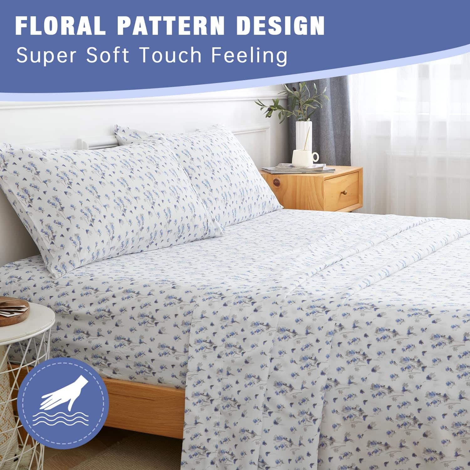Nuestro juego de ropa de cama utiliza microfibra de 90GSM y telas de lujo súper suaves, refrescantes y de doble cepillado. Sensación suave similar al algodón y transpirable; resistente a la decoloración, contracción y arrugas; más grueso y duradero que el algodón, con una costura resistente para prevenir rasgaduras y tener una vida útil más larga. Por favor, despídase de las sábanas sólidas aburridas y actualice su dormitorio con estas hermosas y únicas sábanas de patrón floral.