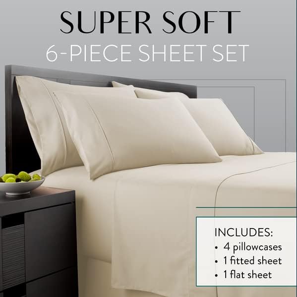 Juego de sábanas King 6 piezas de calidad -Crema