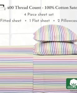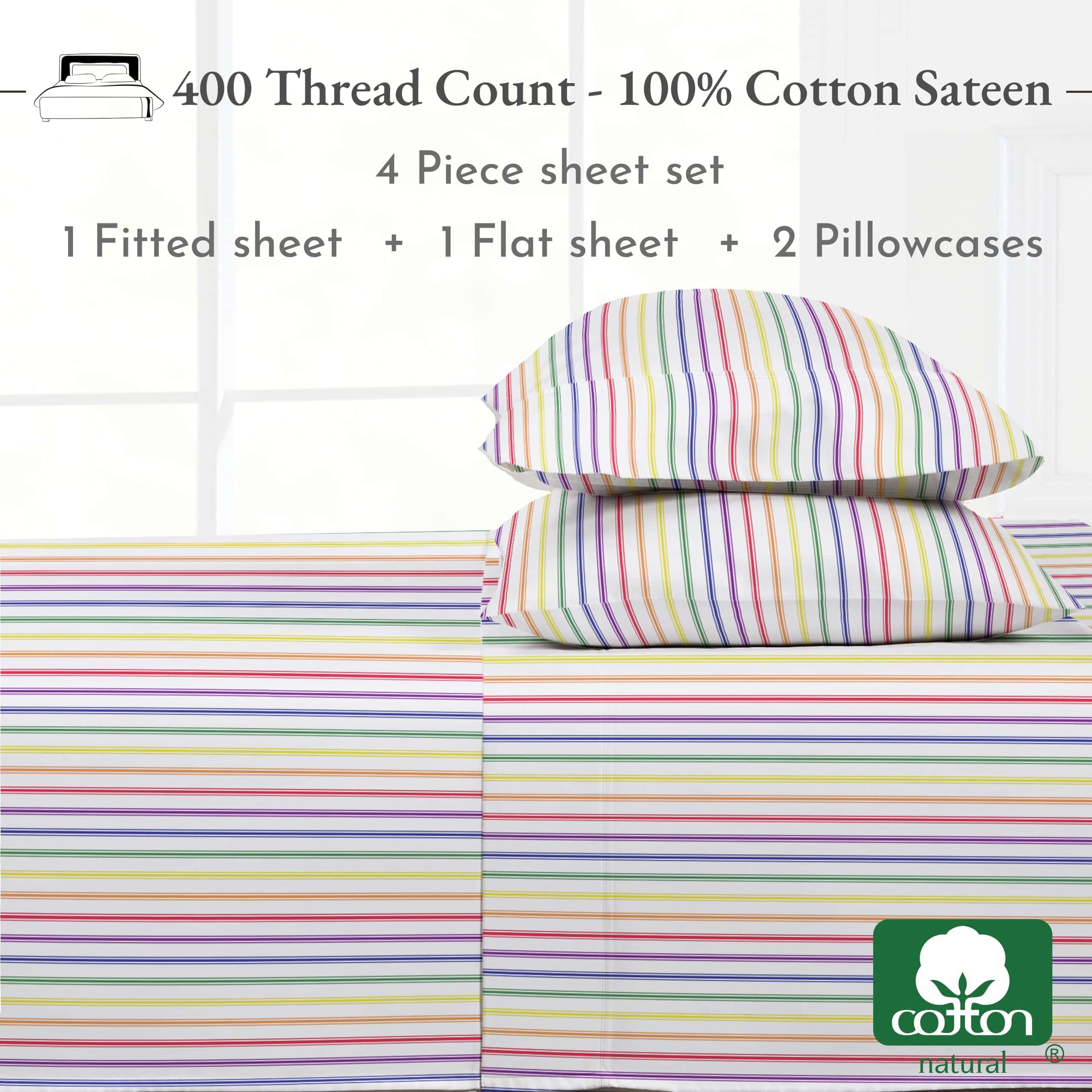 Descubre la mezcla perfecta de estilo y comodidad con los juegos de sábanas estampadas. Agrega un toque de personalidad a tu ropa de cama con nuestros juegos de sábanas estampadas de algodón sateen 100% de 400 hilos. Estas sábanas ofrecen un confort increíble y presentan estampados claros y definidos que expresan sutilmente tu estilo personal. Priorizamos tanto el estilo como la practicidad, asegurando que nuestras sábanas estampadas cumplan con altos estándares de calidad y durabilidad. El tejido naturalmente lujoso y suave proporciona una noche de sueño cómoda, mientras que los colores vibrantes perduran en el tiempo, evitando que se desvanezcan o sangren con el lavado. Nuestros juegos de sábanas estampadas están fabricados con el fino algodón sateen con calidad de impresión inigualable. El tejido de tejido cerrado de la tela la hace ideal para impresiones hermosas y de buen gusto, con colores perfectamente equilibrados evitando cualquier impresión errónea o patrones llamativos. Estos juegos de sábanas están fabricados de manera experta, presentando costuras de calidad y bolsillos de 16 pulgadas de profundidad para ajustarse a colchones de 8 a 16 pulgadas de profundidad. El elástico fuerte y seguro garantiza que tus sábanas permanezcan en su lugar, incluso después de años de uso. Personaliza tu habitación – Eleva tu ropa de cama con nuestras sábanas estampadas, con una variedad de divertidos estampados florales y rayas. Muestra tu personalidad y agrega un toque de color a tu habitación. Es hora de expresarte con nuestras elegantes y prácticas sábanas estampadas.