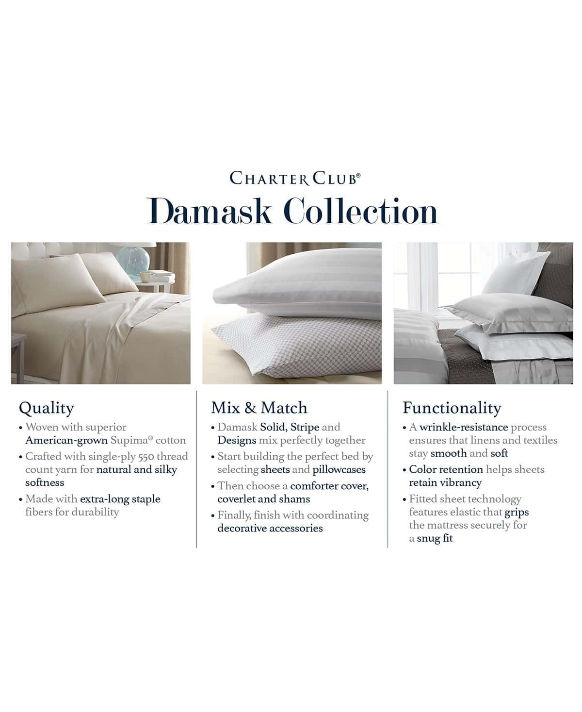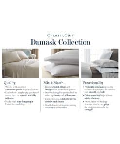 Eleve al instante cualquier conjunto de ropa de cama a un nuevo nivel de estilo de sueño y comodidad con el increíblemente suave algodón Supima y las lustrosas rayas de este juego de sábanas Damask de Charter Club.