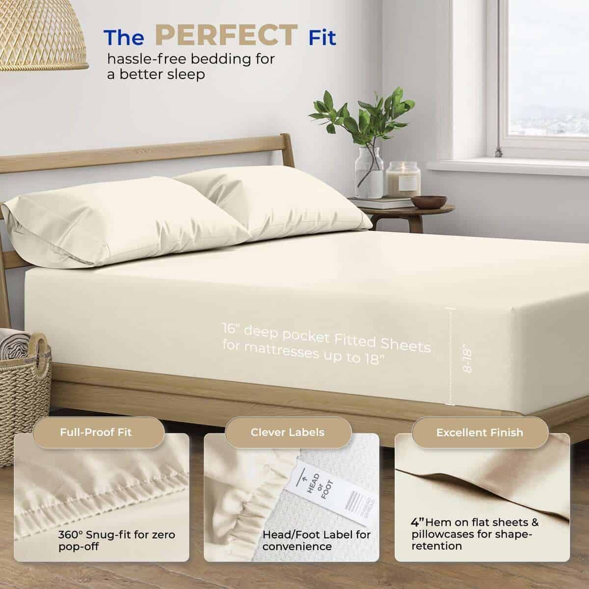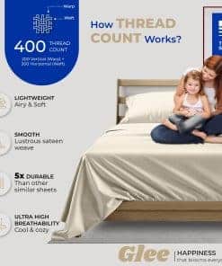 Experimenta la suavidad y el confort de lujo con el juego de sábanas King de THREAD SPREAD. Estas sábanas están hechas de 100% algodón de fibra larga para una transpirabilidad excepcional que te mantendrá fresco y cómodo toda la noche. Con una tela de sarga de 400 hilos, estas sábanas tienen un acabado suave y lustroso que te encantará. El juego incluye una sábana plana, una sábana ajustable con bolsillos profundos de 16″ para adaptarse a colchones de hasta 16″ de grosor, y dos fundas de almohada tamaño King. Además, estas sábanas están certificadas por Oeko-Tex para garantizar que no contienen sustancias nocivas para la salud. Fáciles de cuidar, simplemente puedes lavarlas a máquina para mantenerlas frescas y limpias en todo momento. Disfruta de un sueño reparador y confortable con las sábanas King de THREAD SPREAD.