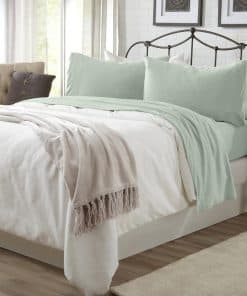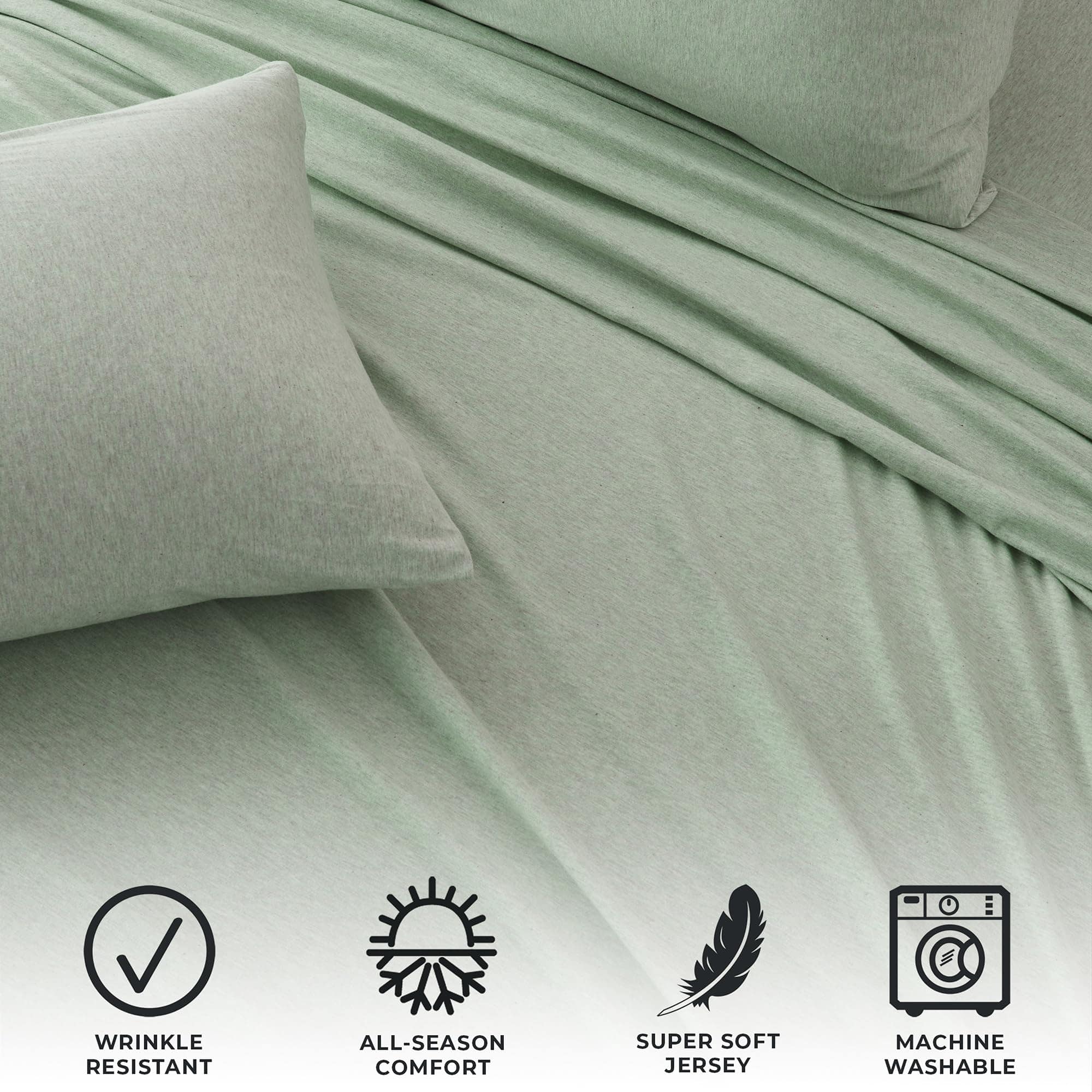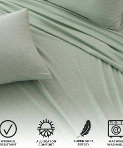 1. Extra Suave y Acogedor: Estas sábanas de jersey se sienten como tu camiseta favorita. El tejido de mezcla de algodón es cálido, suave, flexible y transpirable para un máximo confort al dormir. 2. Cada juego incluye 1 sábana bajera, 1 sábana plana y 2 fundas de almohada (1 funda de almohada para los tamaños Twin y Twin XL). Elija entre una variedad de hermosos colores sólidos heathered. 3. Confort para Todas las Estaciones: La tela de 150 GSM es perfecta para cualquier época del año. Con una mezcla de 60% algodón y 40% poliéster, este juego de sábanas es lo suficientemente ligero para el verano y lo suficientemente acogedor para el invierno. 4. Ropa de Cama Limpia: Nos comprometemos a entregar productos excepcionales libres de químicos y tintes dañinos. Descanse tranquilo, su ropa de cama es limpia y está hecha de materiales de calidad, perfecta y segura para usted y su familia. 5. Enfoque en el Cliente: La satisfacción del cliente es de suma importancia para nosotros. Estamos seguros de que amará nuestros productos, pero si no está satisfecho con estas sábanas de franela, nuestro equipo de servicio al cliente trabajará con usted para solucionarlo. Tenemos muchos productos disponibles. Encuentre su juego de ropa de cama perfecto en una de nuestras colecciones. Desde sábanas florales hasta sábanas de franela invernal, ¡seguro que encontrará algo perfecto y acogedor para su hogar!