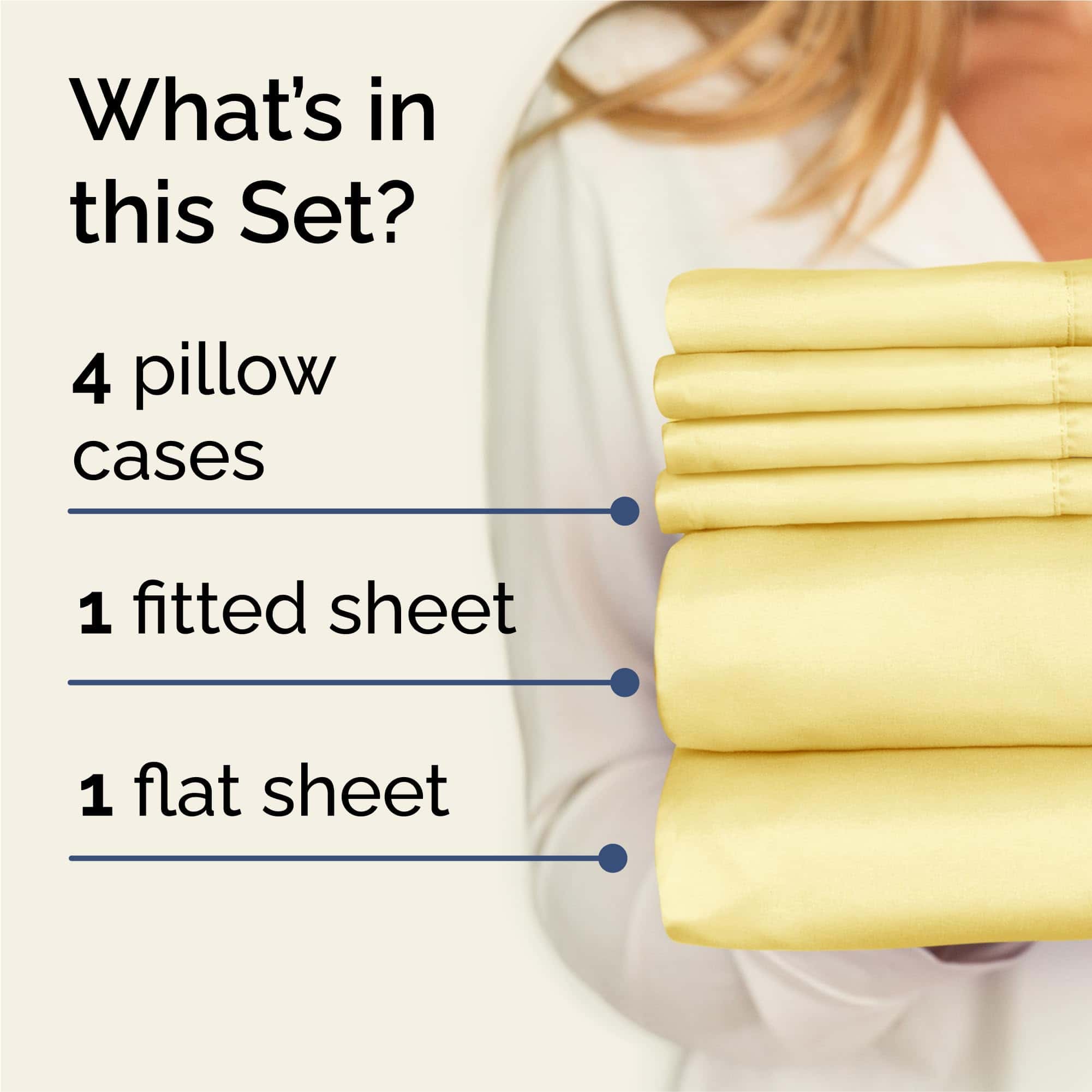 Juego de Sábanas King de 6 Piezas – Cómodo, -Amarillo