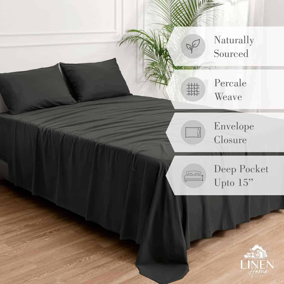5. Cuidado de lavado sin esfuerzo, comodidad duradera: Di adiós a la molestia de rutinas de cuidado complicadas. Con los juegos de sábanas de algodón percal Linen Home, cuidar tu ropa de cama es pan comido. Estas sábanas son aptas para lavadora y resistentes a la decoloración, asegurando que mantengan sus colores vibrantes y calidad con el tiempo. Nuestras sábanas de algodón de alta calidad están diseñadas para resistir lavados regulares, brindándote una durabilidad duradera sin comprometer la comodidad. Disfruta de la combinación perfecta de comodidad y practicidad.