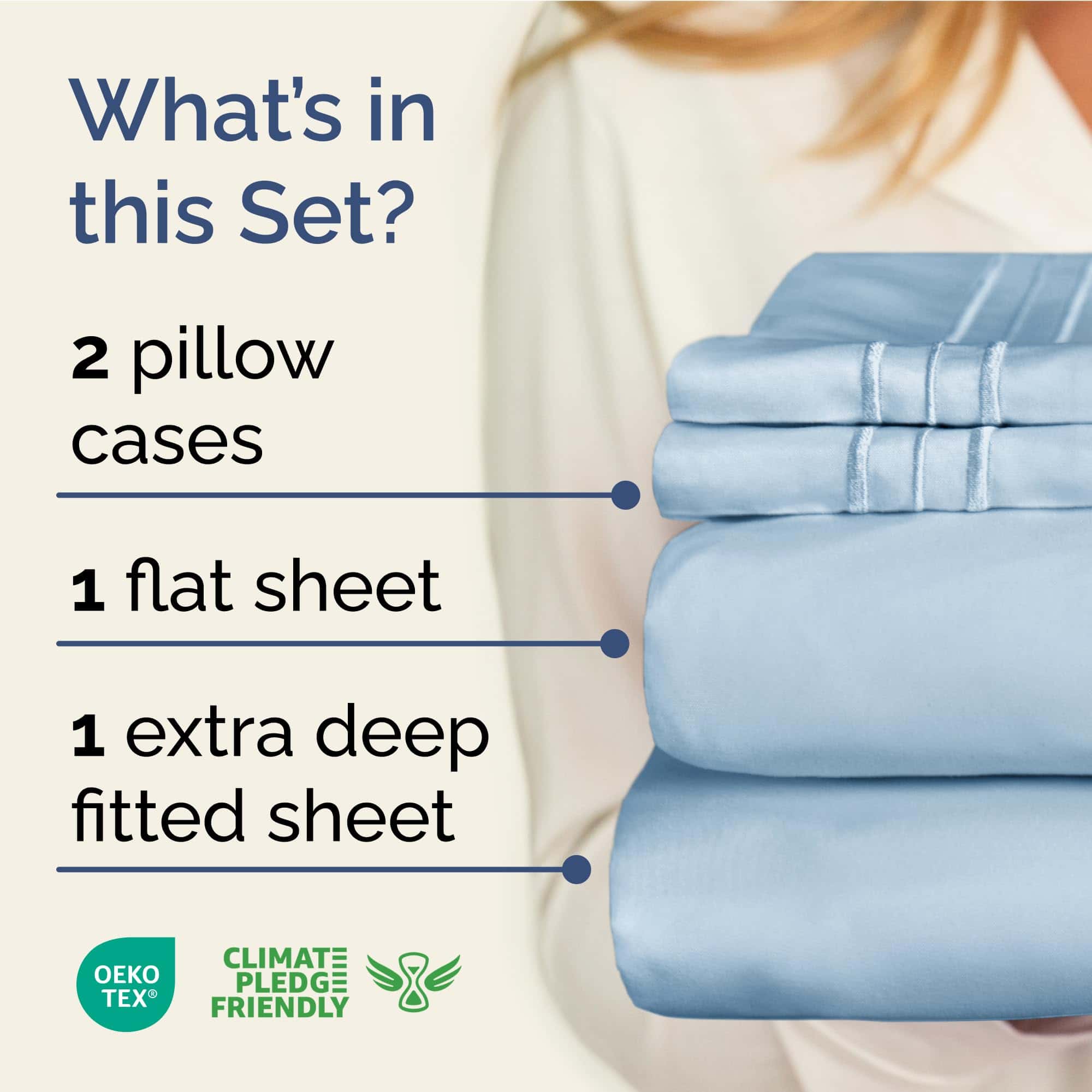 Juego de Sábanas King de Bolsillo Extra -Azul Cielo