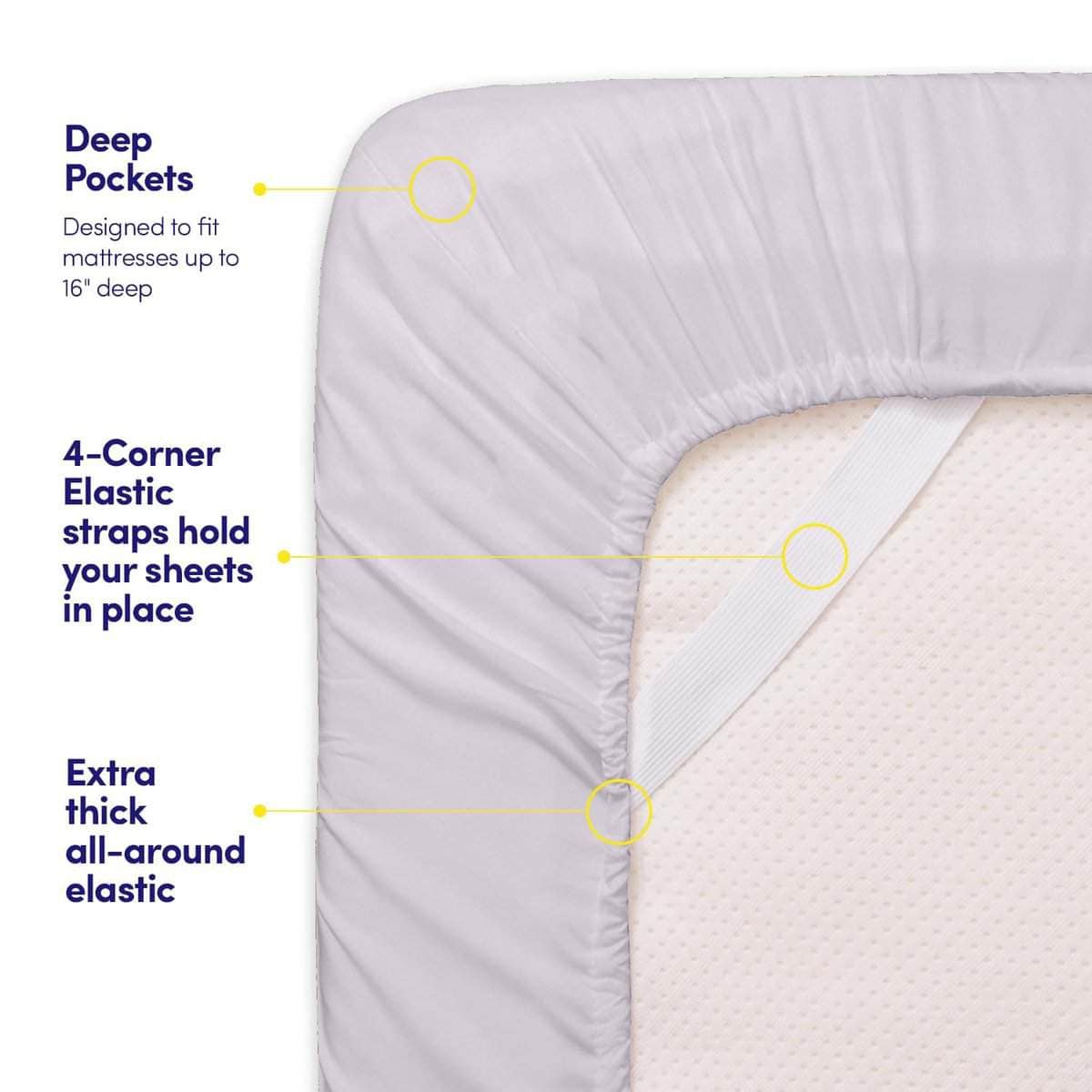 Sábanas ajustadas que se mantienen en su lugar con correas incorporadas ¡La solución perfecta para una cama segura y sin arrugas! ¡Adiós a las sábanas que se deslizan y se desplazan! Nuestro juego de sábanas de lujo con correas elásticas incorporadas en las esquinas está diseñado para permanecer en su lugar, brindándole una superficie de descanso suave y cómoda todas las noches. Tallas disponibles y medidas: Queen: 1 Sábana plana (92″ x 102″), 1 Sábana ajustada (60″ x 80″), 2 Fundas de almohada estándar (20″ x 30″) King: 1 Sábana plana (102″x105″), 1 Sábana ajustada (78″x80″), 2 Fundas de almohada King (20″x40″) California King: 1 Sábana plana (108″x102″), 1 Sábana ajustada (72″x84″), 2 Fundas de almohada King (20″x40″) Full: 1 Sábana plana (81″x96″), 1 Sábana ajustada (54″x75″), 2 Fundas de almohada estándar (20″x30″) Twin: 1 Sábana plana (66″x96″), 1 Sábana ajustada (39″x75″), 1 Funda de almohada estándar (20″x30″) Twin XL: 1 Sábana plana (66″x102″), 1 Sábana ajustada (39″x80″), 1 Funda de almohada (20″x30″) RV Short Queen: 1 Sábana plana (99″ L x 90″ W), 1 Sábana ajustada (75″ L x 60″ W x 10″ D), 2 Fundas de almohada (20″ x 30″) Split King: 1 Sábana plana (102″x105″), 2 Sábanas ajustadas (39″x80″), 2 Fundas de almohada King (20″x40″) Perfectas para cada dormitorio: ya sea que esté equipando un dormitorio principal, una habitación de invitados, un dormitorio universitario, un RV o una casa rodante, estas lujosas sábanas con correas integradas proporcionan la combinación perfecta de comodidad, durabilidad y elegancia. ¡Haz clic en «Agregar al carrito» ahora y experimenta las sábanas perfectas que se mantienen en su lugar hoy!