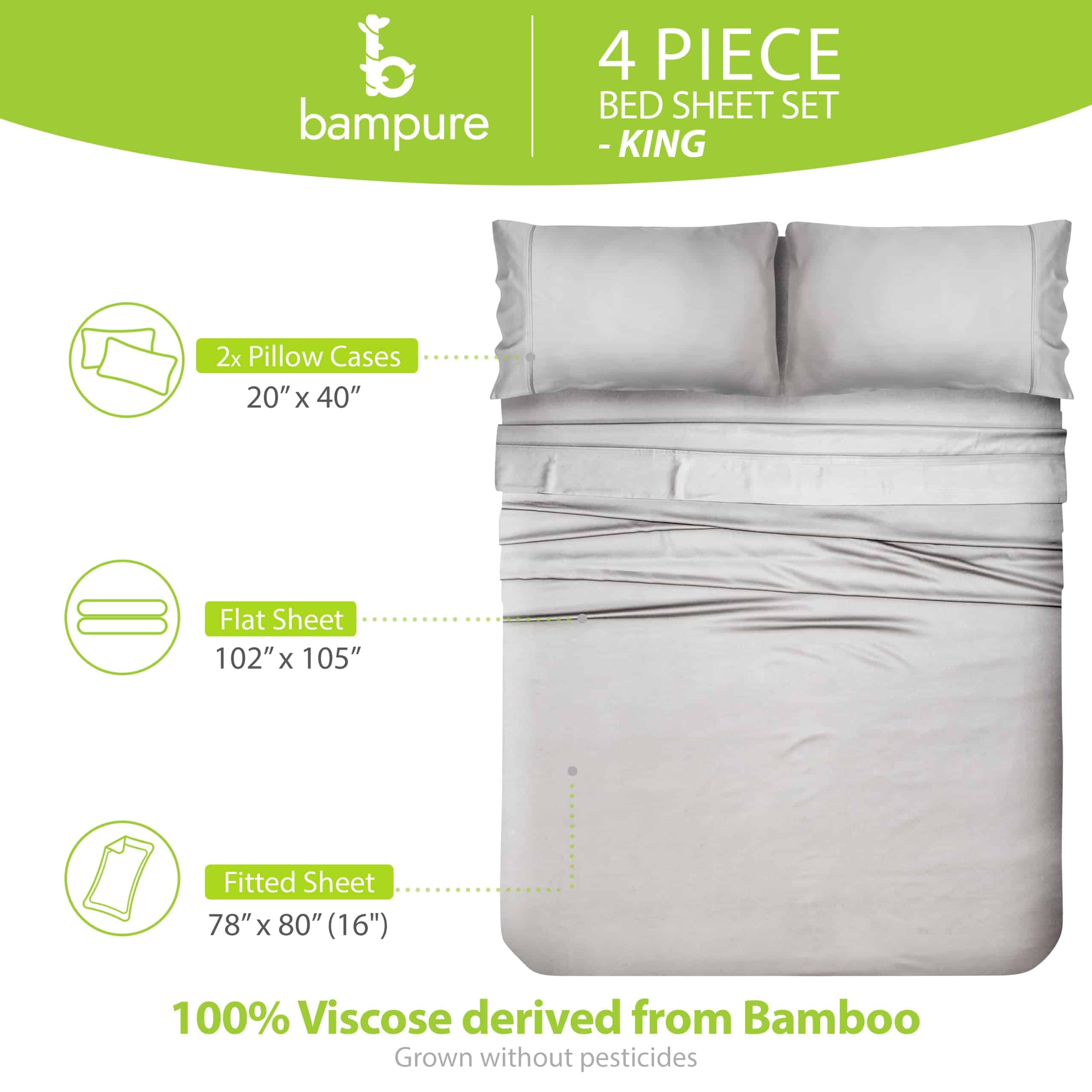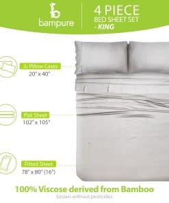 Experimenta el lujo puro de las sábanas king 100% viscosa derivada de bambú con el juego de sábanas de la Serie de Lujo BAMPURE. Este juego completo de sábanas de 4 piezas para cama king incluye una sábana plana suave de 102″x105″, una sábana ajustable totalmente elástica de 78″x80″ para un ajuste seguro en colchones de hasta 16 pulgadas de profundidad, y 2 fundas de almohada de cierre tipo sobre de 20″x40″ para mayor comodidad. El tejido en lujosa trama de satén de las sábanas ofrece una sensación increíblemente suave y lisa que se vuelve aún más suave con cada lavado. Las propiedades termorreguladoras de las sábanas mantienen fresco y relajado durante toda la noche, perfecto para los que duermen calientes o aquellos con piel sensible. Además, las sábanas son certificado OEKO-TEX STANDARD 100 para un ambiente de sueño saludable. ¡Mejora tu sueño esta noche con el juego de sábanas King de la Serie de Lujo BAMPURE!