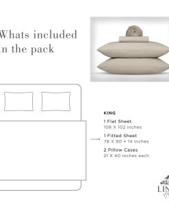 Discover comfort and convenience in our expertly designed sheets for your bed. The deep-pocket fitted sheet with elastic fits up to 15″ mattresses, ensuring a perfect fit. This king set includes a flat sheet (108″X102″), a fitted sheet (78″X80″+14″), and 2 Envelope Closure Pillow Cases (21″X40″). With premium double-needle hem stitching on the flat sheet and pillowcases, enjoy durability and an exclusive feel. The pillowcases feature an envelope closure for a polished look.