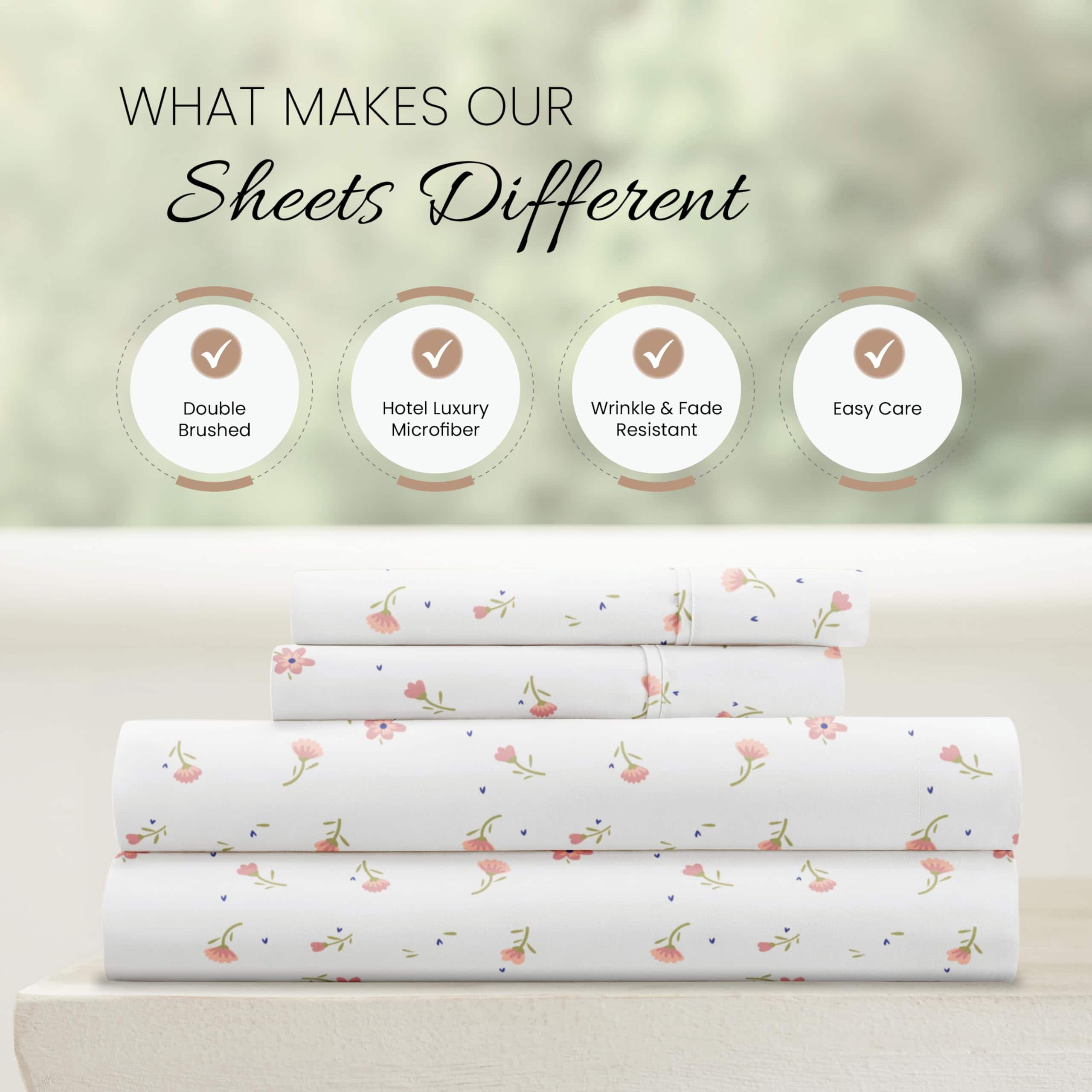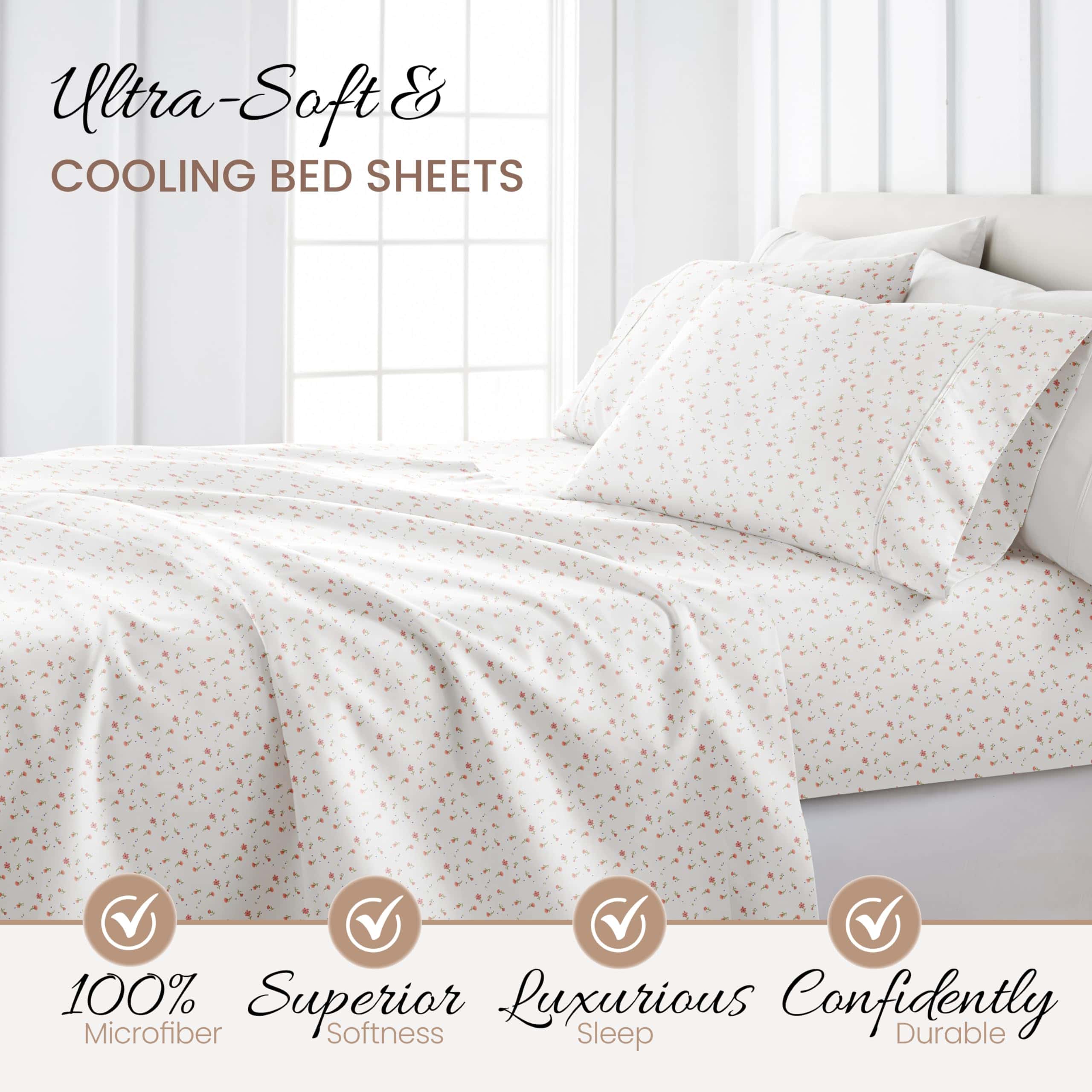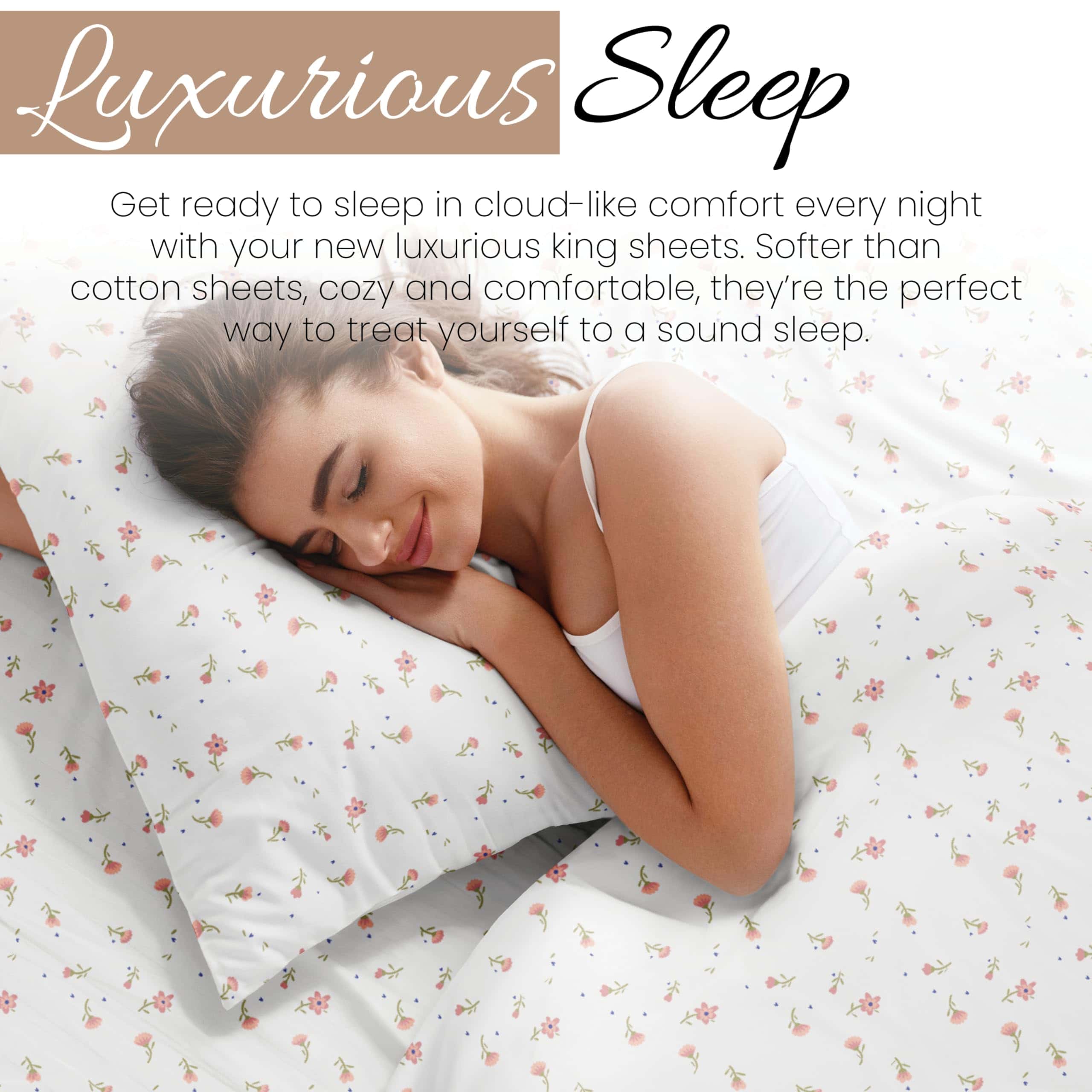 Juego de sábanas king de microfibra -Rosa floral