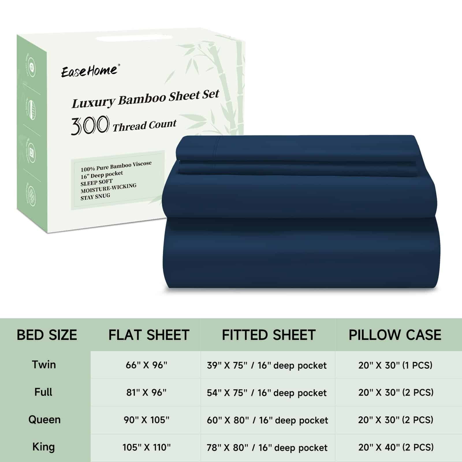 Juego de sábanas King EaseHome, 100% Viscosa Derivada de