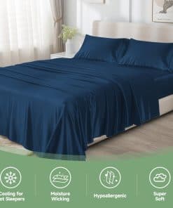 Estos juegos de sábanas king son suaves y transpirables, están hechos con 100% viscosa derivada de bambú para una capacidad de enfriamiento y transpirabilidad mejoradas, La tela es muy suave y también tiene propiedades que absorben la humedad para mantenerte seco y cómodo toda la noche. Estas suaves sábanas king están diseñadas con viscosa pura naturalmente, manteniéndote fresco y cómodo mientras duermes. Nuestras sábanas king son ligeras e hipoalergénicas, proporcionando una mejor experiencia de sueño que muchas alternativas de microfibra, seda o algodón peinado.