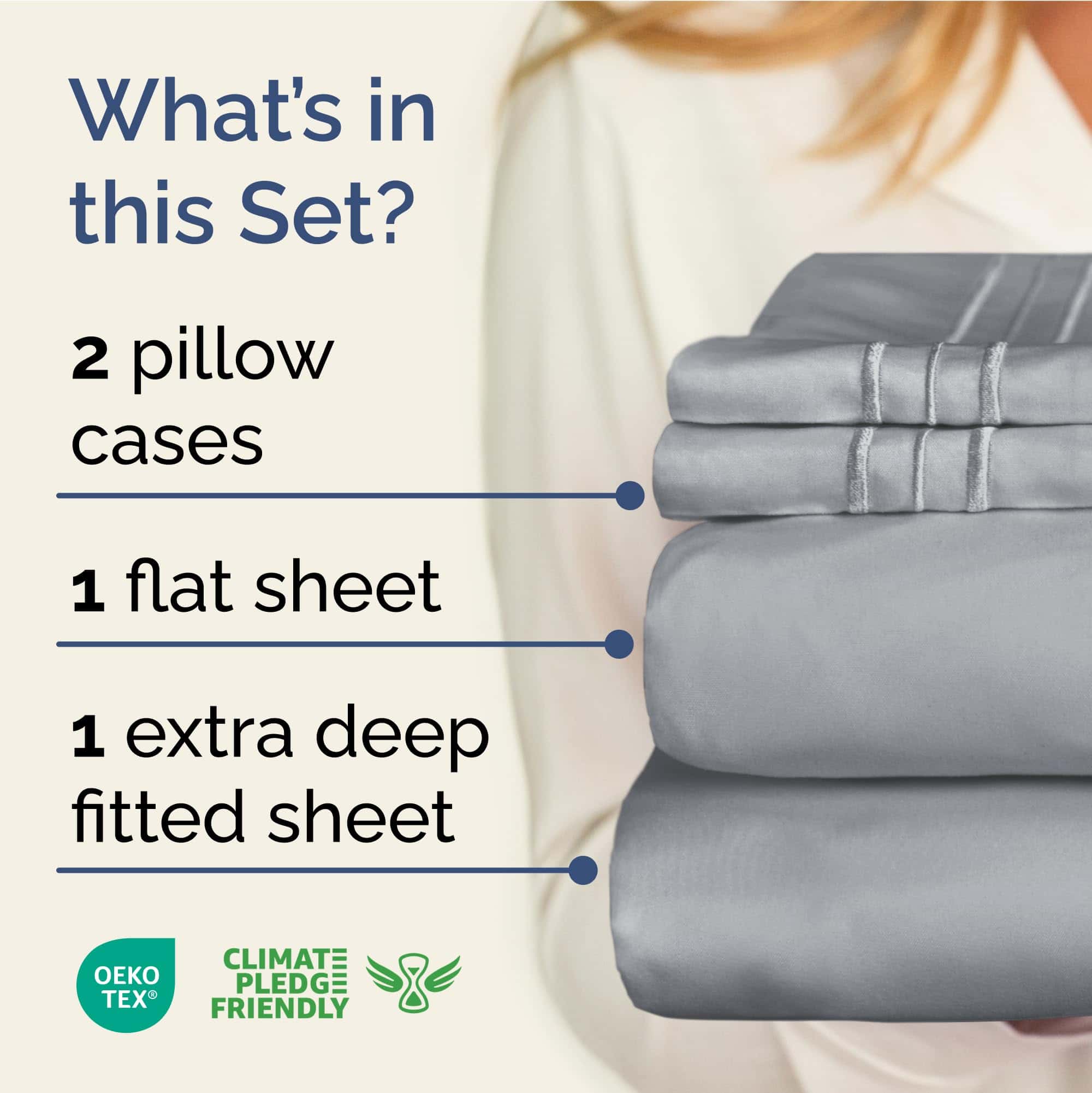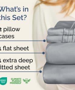 Si estás buscando sábanas de calidad para tu colchón extra profundo, este juego de sábanas King Extra Profundas es la elección perfecta. Hechas de microfibra suave, estas sábanas son las más suaves que hemos creado, ofreciéndote una sensación ligera y cómoda para una noche de sueño reparador. Estas sábanas están diseñadas para colchones con bolsillos muy profundos, se ajustan a cualquier colchón con bolsillos que tengan 18, 20, 21, 22 y 24 pulgadas de profundidad, con un elástico alrededor de la sábana ajustable que se estira para un ajuste perfecto. El juego de 4 piezas incluye 2 fundas de almohada con un hermoso diseño de bordado decorativo en cada una, con diseños de cierre que complementan perfectamente el conjunto. Estas sábanas son ideales para colchones con un topper de 3 pulgadas o 4 pulgadas en la parte superior, toppers de espuma con memoria, grandes almohadillas de colchón, colchones con pillow top y de espuma con memoria. Las dimensiones generosas y tamaños de las sábanas garantizan un ajuste perfecto en tu colchón extra grueso, y su calidad duradera te brindará noches de descanso y comodidad. Actualiza tu dormitorio con este lujoso juego de sábanas King Extra Profundas y disfruta de la suavidad y el confort que solo las mejores sábanas pueden ofrecer.