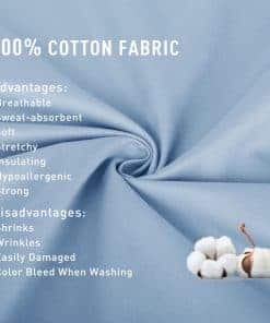 Disponible en varios colores para coordinar con la decoración de la habitación, es adecuado para todas las estaciones. El simple ribete plateado añade un toque clásico. El elástico grueso y de longitud completa está generosamente dimensionado para adaptarse a su colchón. La profundidad de nuestra sábana ajustable mide 19 pulgadas y está diseñada para adaptarse a 18 pulgadas, 20 pulgadas, 22 pulgadas, 24 pulgadas y 26 pulgadas de profundidad. Fabricado en instalaciones conformes con BSCI y certificadas por OEKO-TEX Standard 100, garantizando el cumplimiento de normas de seguridad y calidad. Para evitar que se encoja y mantener la calidad de la tela, secar a máquina a baja temperatura. Lavar por separado artículos de algodón de colores claros y oscuros. La tela de algodón se suavizará con cada lavado. Tenga en cuenta que pueden producirse ligeras variaciones de color debido a diferentes ajustes de pantalla e iluminación.
