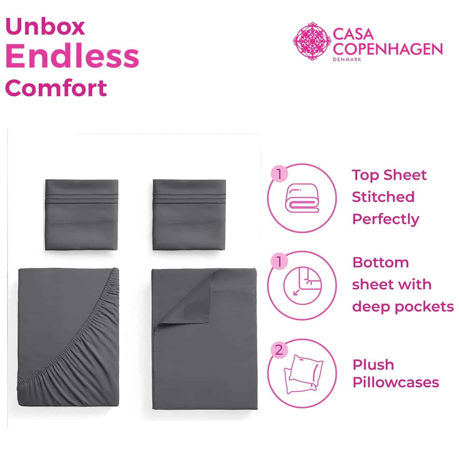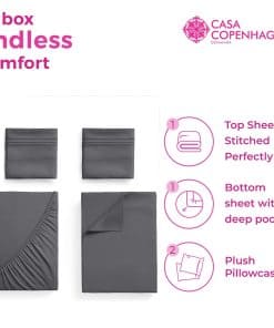 El Juego de Sábanas 100% Algodón Luxuria de Casa Copenhagen, diseñado con precisión en Dinamarca, está hecho de algodón puro transpirable de fibra de hilo extra largo para mantenerte fresco y cómodo durante toda la noche. Este juego de sábanas de algodón percal es la adición perfecta para tu colección de cama y hace que tu dormitorio sea elegante y romántico. Nuestras sábanas son lustrosas y duraderas, perfectas para el uso diario y seguirán siendo suaves y flexibles lavado tras lavado. Transforma tu cama en un refugio con este elegante juego de sábanas. Nuestros productos están hechos éticamente y disponibles en múltiples tamaños y colores, complementan cualquier decoración de dormitorio y son una buena elección para regalar a tus seres queridos.
