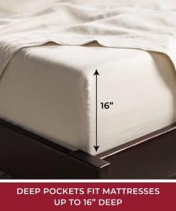 2. Construcción de calidad para toda la vida – Invierta en una vida de mejor descanso. Resistente a la decoloración, manchas, encogimiento, olores, pelusas y estática. Permanece en su lugar mientras duerme: los bolsillos extra profundos en la sábana ajustable se ajustan a colchones de hasta 16 pulgadas, con elástico alrededor para facilitar la colocación y extracción. Gran regalo para cumpleaños, fiestas, bodas, inauguraciones de casas y más.
