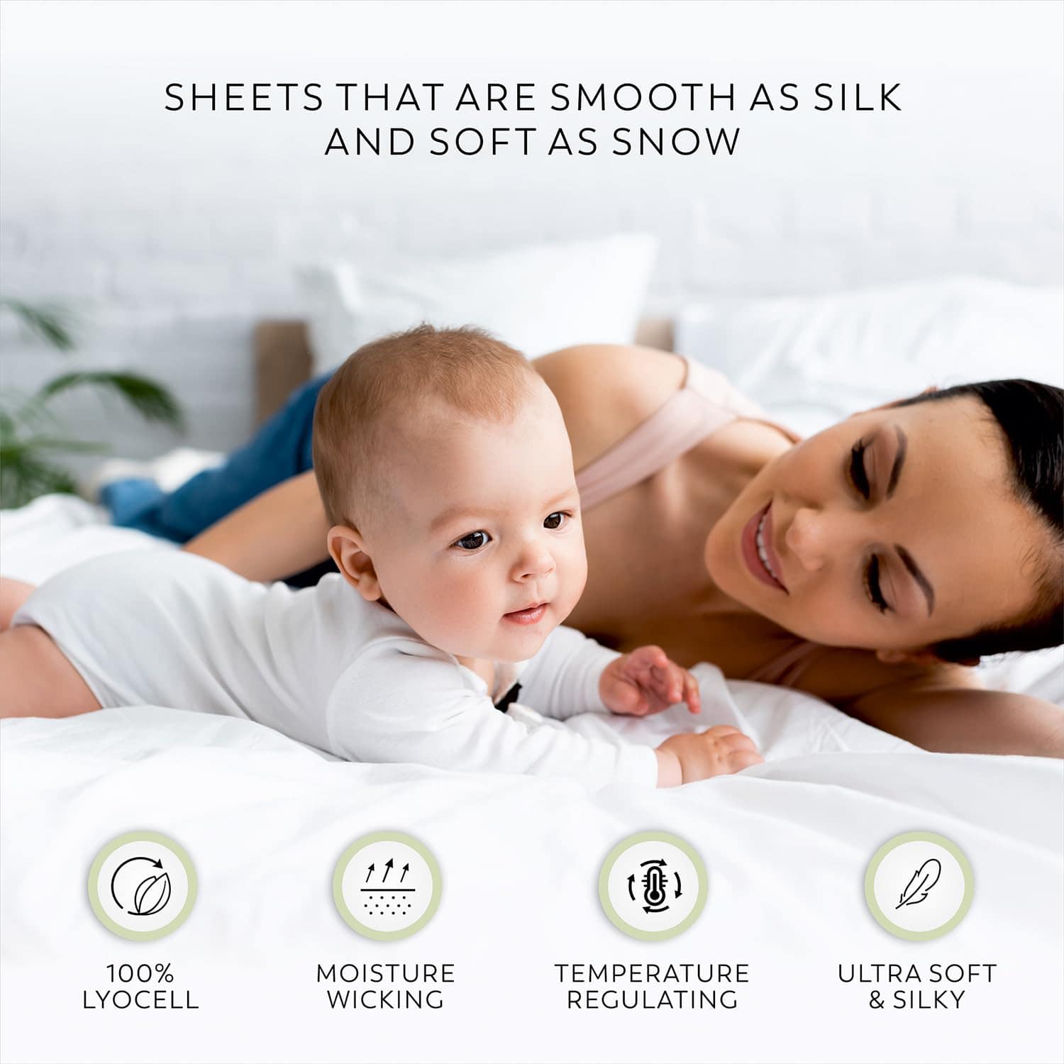 1. Siente la Diferencia del Lyocell: Fabricadas con 100% Lyocell, nuestras sábanas de satén son de alta calidad. Naturalmente absorbentes, las sábanas de Lyocell mantienen la temperatura del cuerpo, manteniéndote cómodo, sin importar la temporada.
