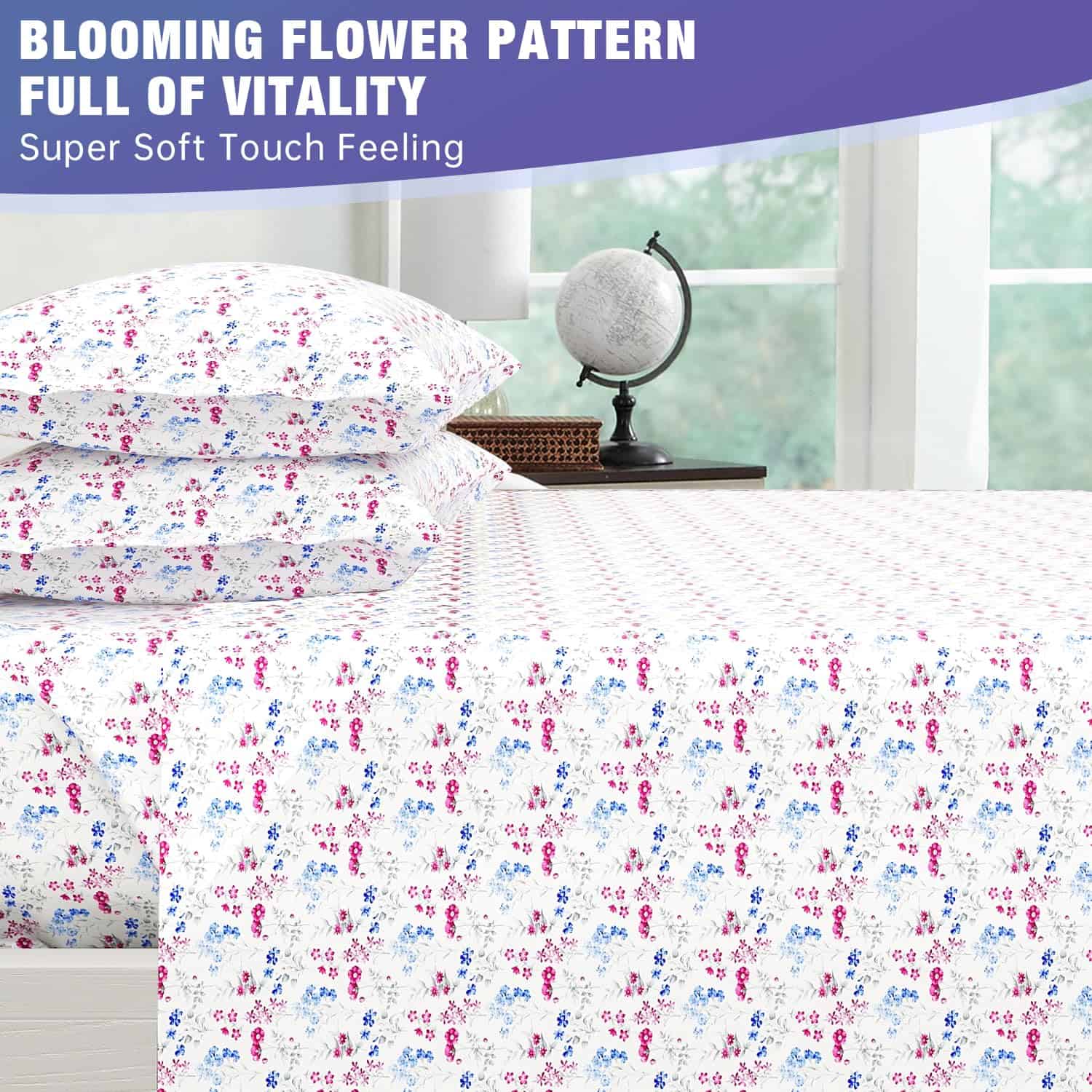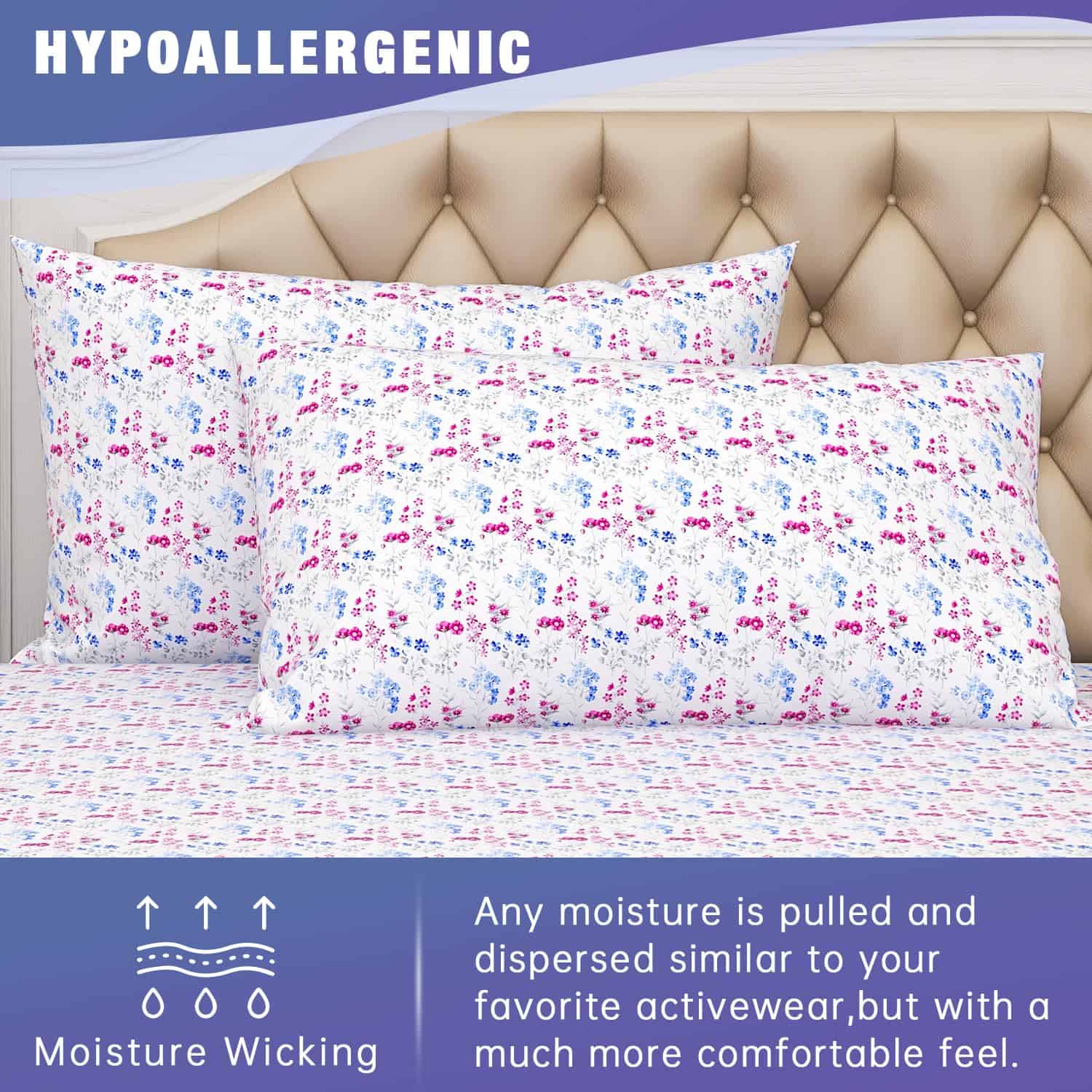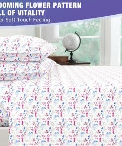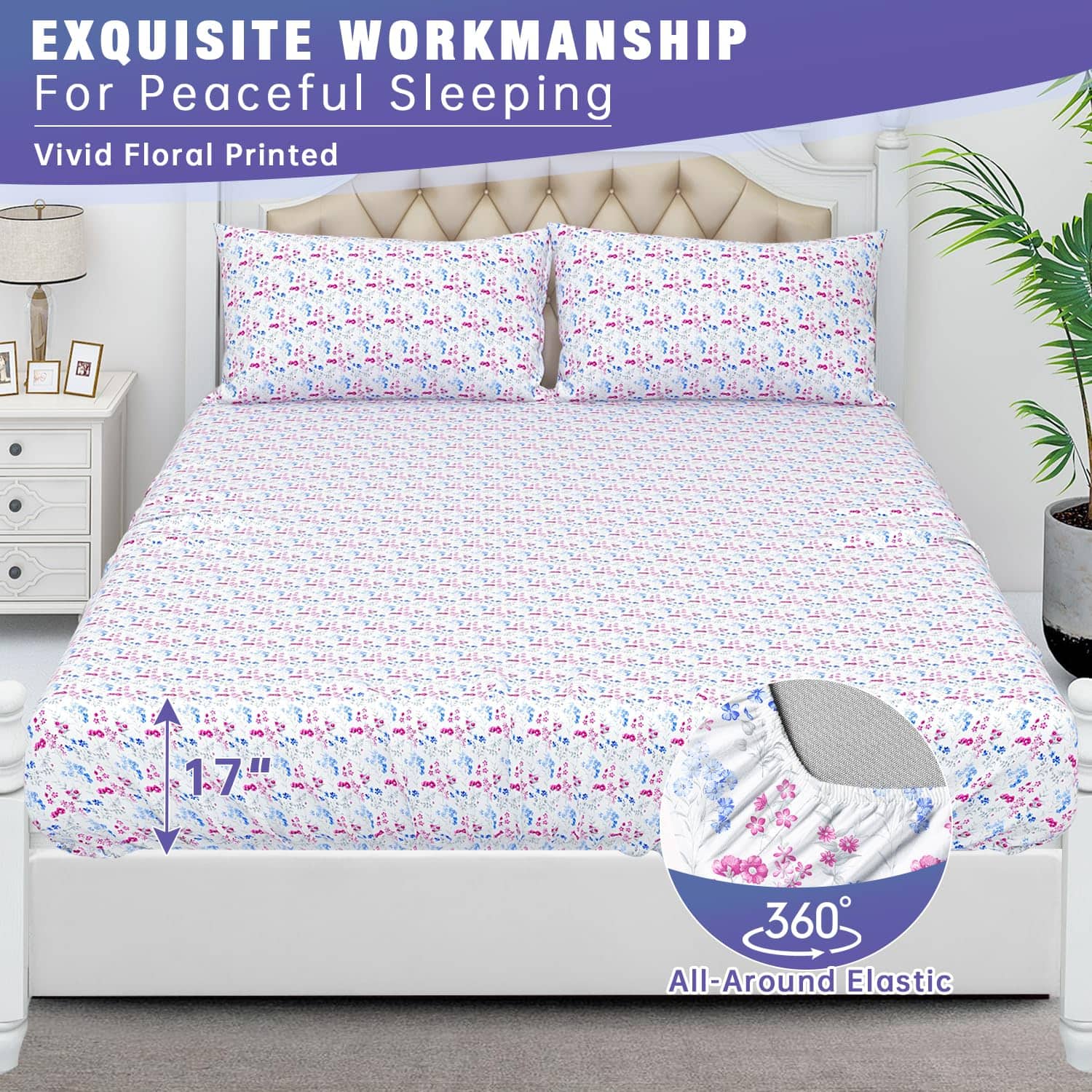4. Juego de sábanas king size de 4 piezas (1 sábana plana: 102″x 108″, 1 sábana ajustable: 78″x 80″x 17″, 2 almohadas: 20″x 40″). Las sábanas ligeras y suaves de flores rosas son ideales para la habitación de adultos o colchones de hotel.