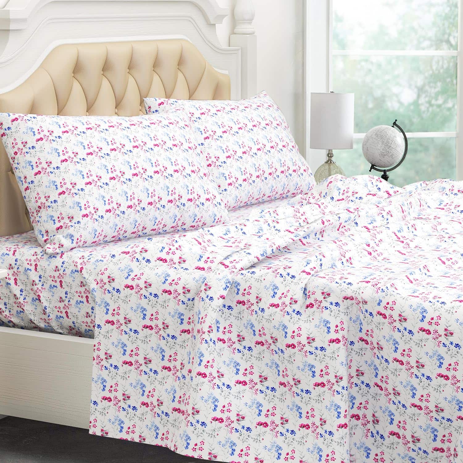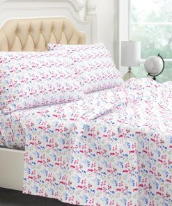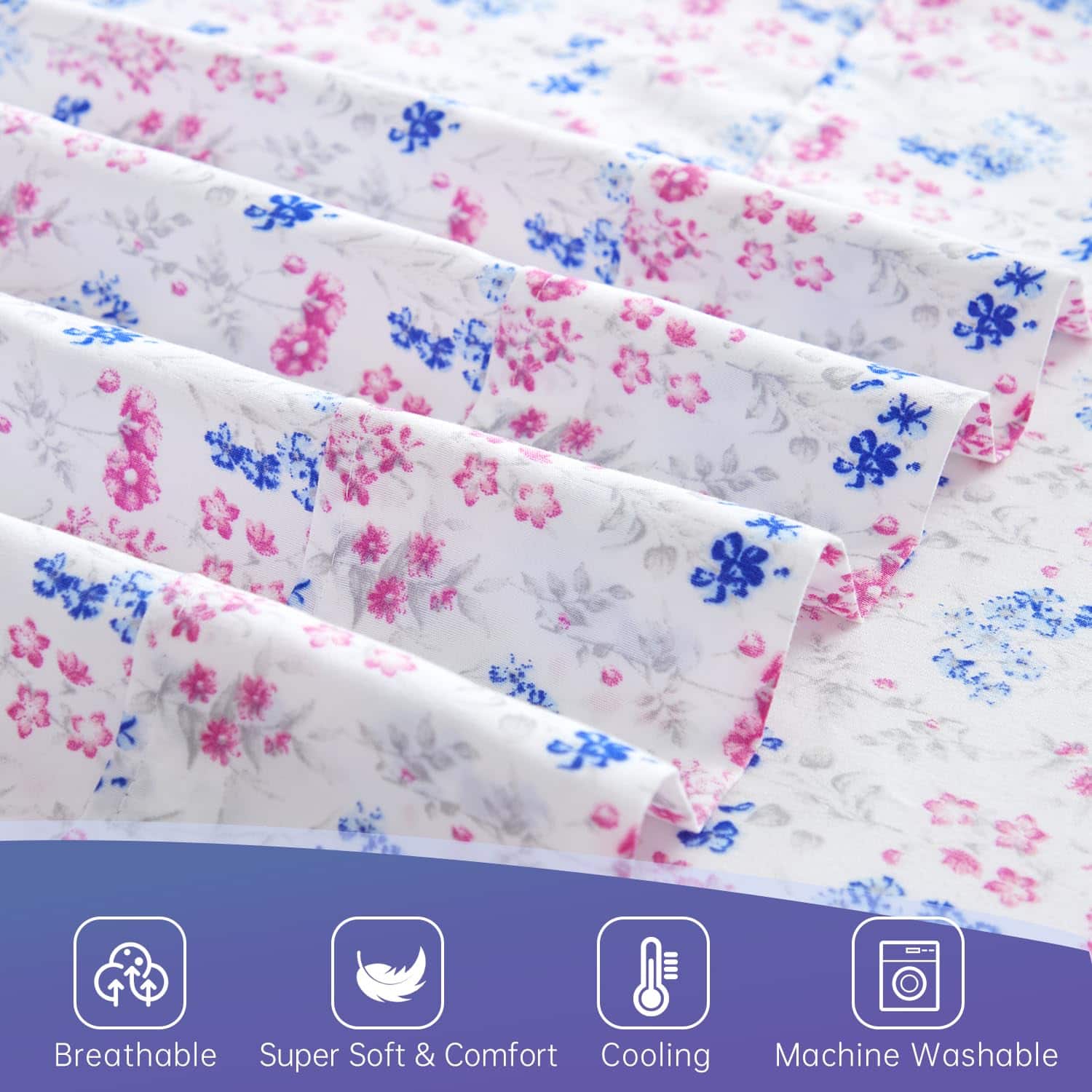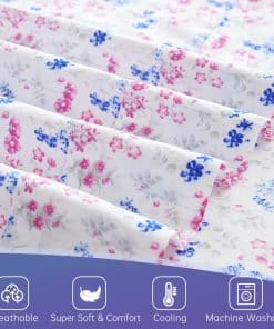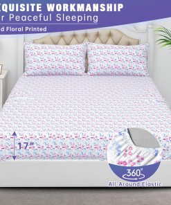 4. Juego de sábanas king size de 4 piezas (1 sábana plana: 102″x 108″, 1 sábana ajustable: 78″x 80″x 17″, 2 almohadas: 20″x 40″). Las sábanas ligeras y suaves de flores rosas son ideales para la habitación de adultos o colchones de hotel.