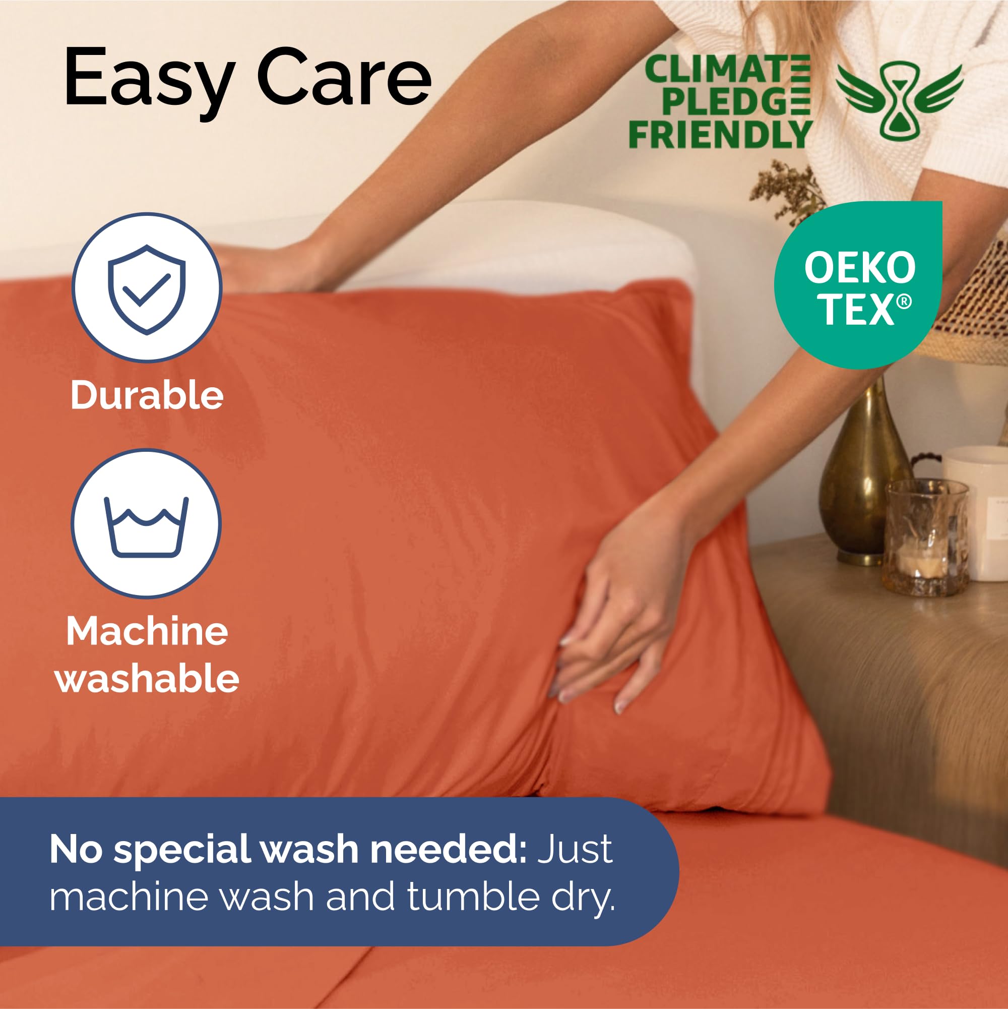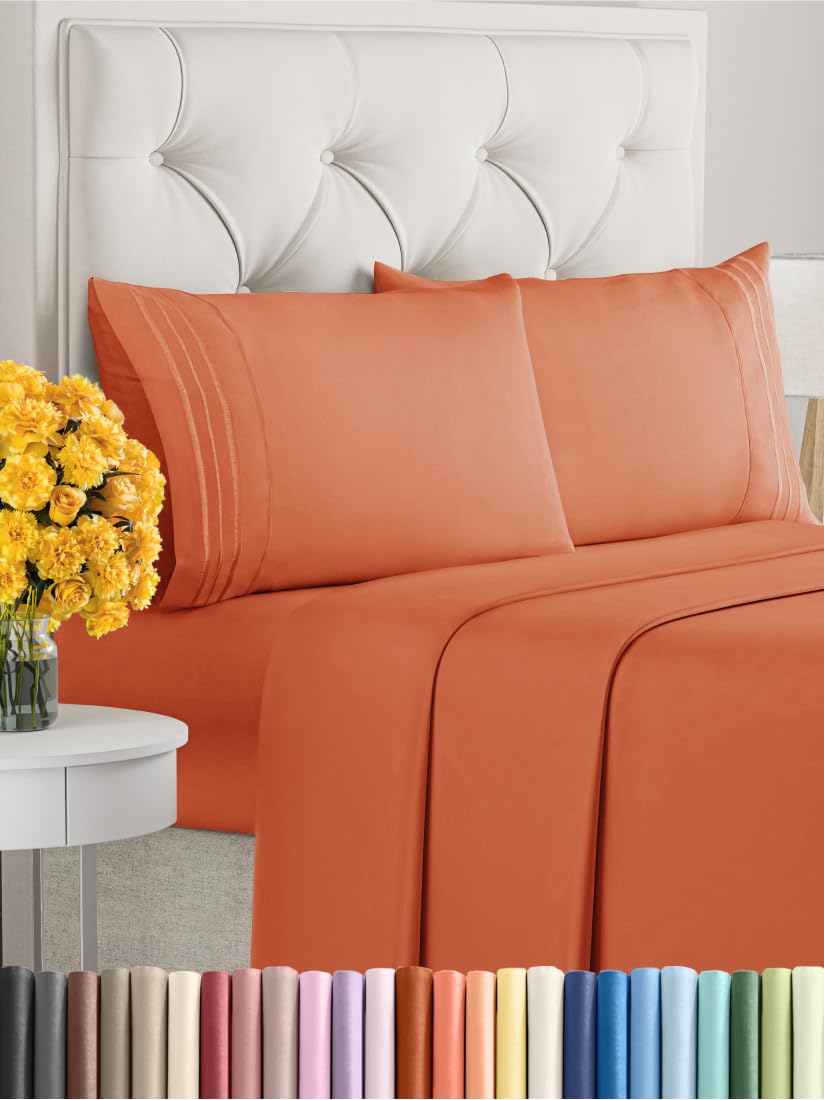 Las sábanas King Size de 4 piezas son perfectas para aquellos que buscan una experiencia de sueño de lujo. Este juego incluye 2 fundas de almohada, sábana plana y sábana ajustable en un hermoso color calabaza cosechada. Con bolsillos profundos que se adaptan a colchones de hasta 16 pulgadas de profundidad, estas sábanas son fáciles de colocar y cómodas de usar. Fabricadas con microfibra cepillada de la más alta calidad, estas sábanas son suaves, transpirables y refrescantes, superando la suavidad del algodón egipcio. Son ideales para cualquier habitación de la casa, ya sea la habitación principal, la habitación de invitados, un RV o una casa de vacaciones. Además, son un regalo perfecto para todos, gracias a su gran calidad y suavidad a un precio razonable. Disfruta de la comodidad y la elegancia de las sábanas CGK Unlimited, ¡y prepárate para tener las mejores noches de sueño de tu vida!