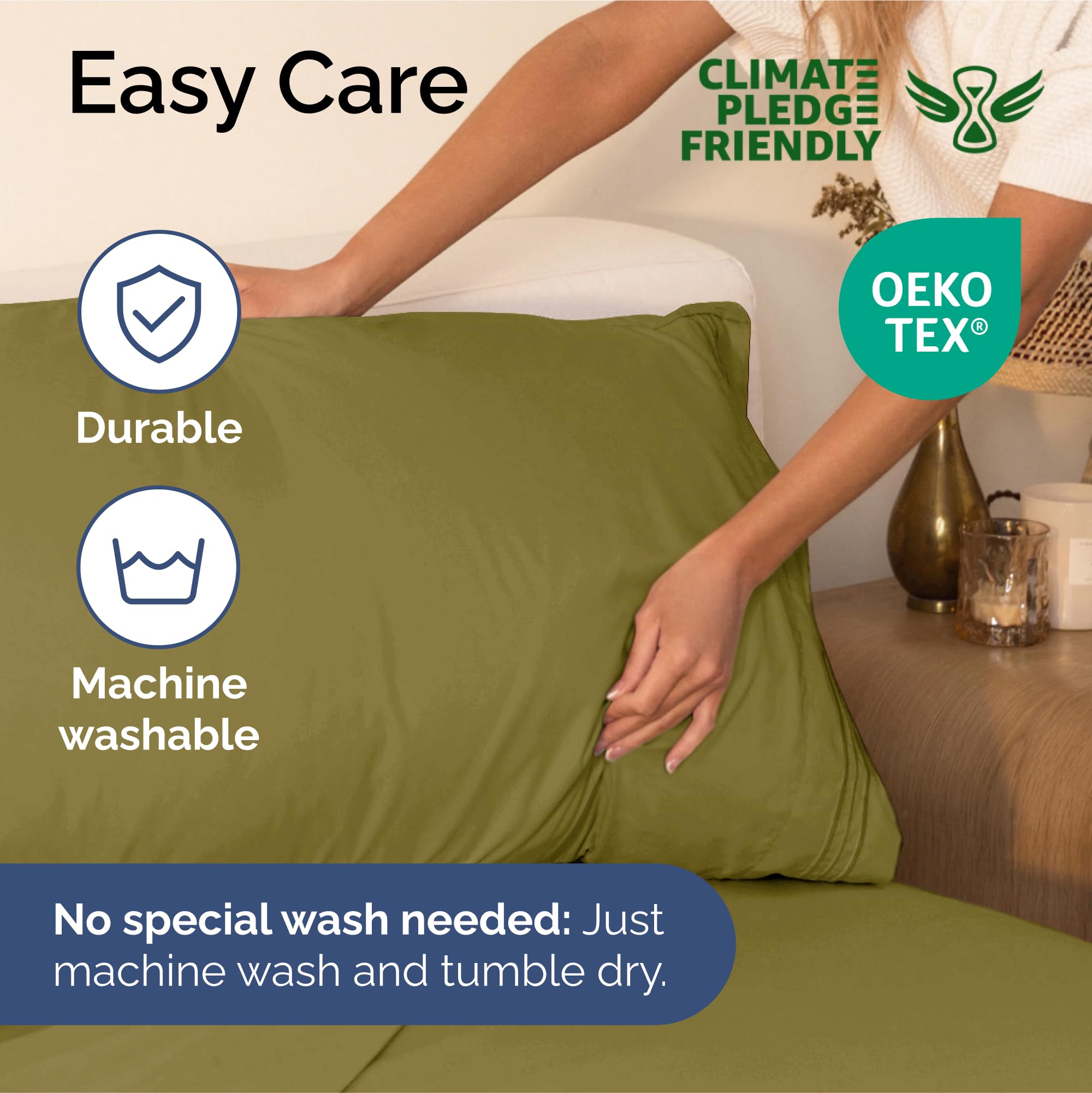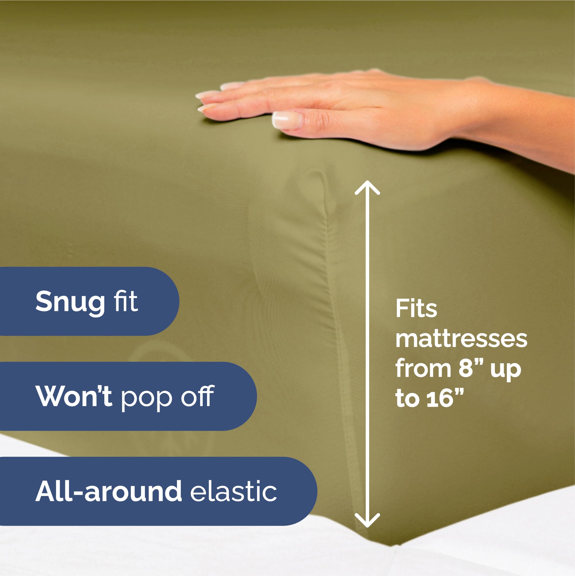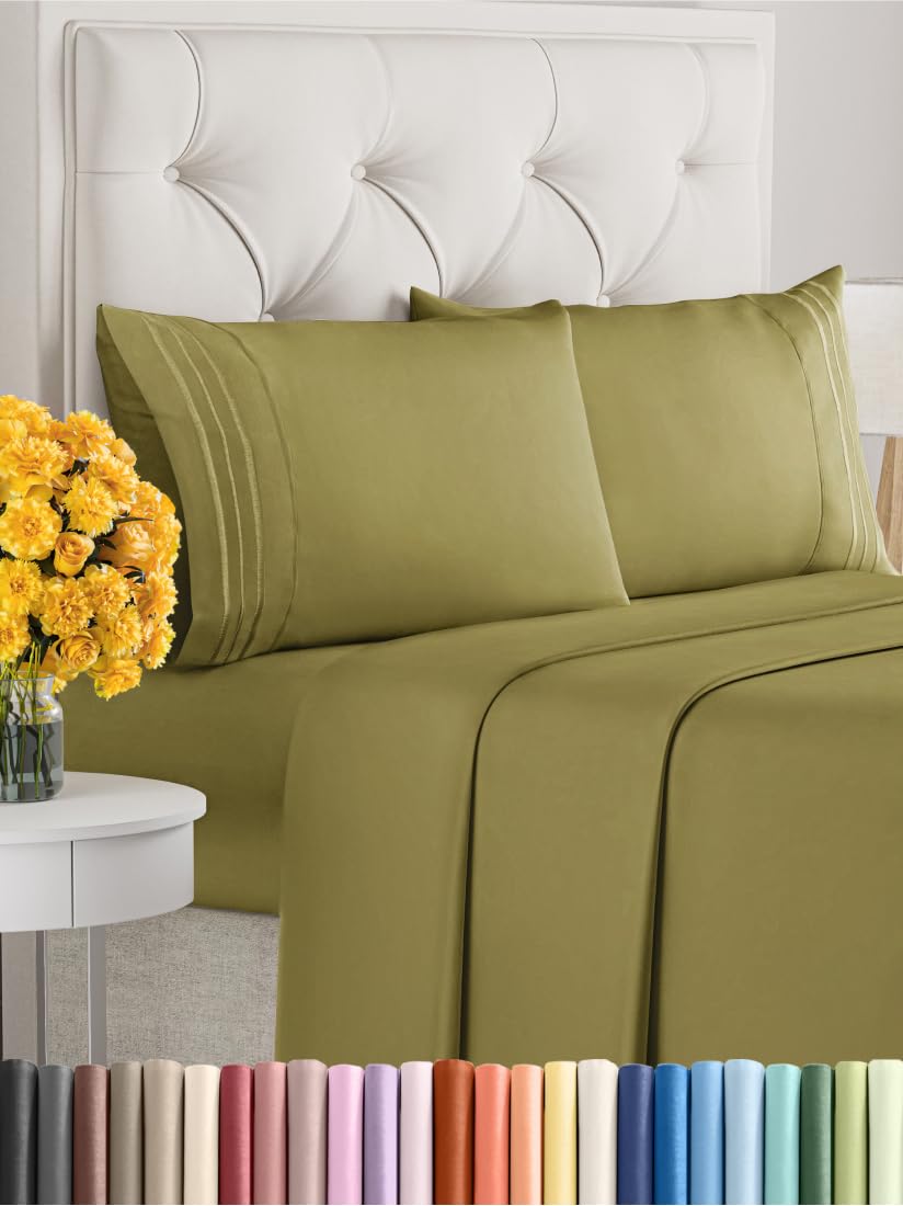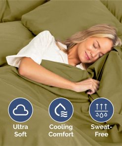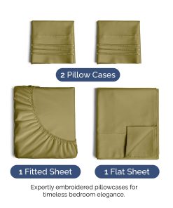 Juego de sábanas de 4 piezas tamaño King que incluye 2 fundas de almohada, sábana plana y sábana ajustable. La sábana plana mide 108″ x 102″, la sábana ajustable es de 80″ x 78″ y las 2 fundas de almohada son de 20″ x 40″. Los bolsillos profundos y el ajuste fácil permiten que estas sábanas se adapten a colchones de hasta aproximadamente 16 pulgadas de profundidad. Son extremadamente suaves, transpirables y frescas, superando en suavidad a las sábanas de algodón egipcio y algodón orgánico. Están hechas de microfibra cepillada de la más alta calidad, lo que las convierte en una opción muy cómoda y asequible. Ideales para cualquier habitación de la casa, ya sea el dormitorio principal, la habitación de invitados, un RV o una casa de vacaciones. También son una excelente idea de regalo para cualquier persona que aprecie la comodidad y la suavidad de unas buenas sábanas. Disfruta del lujo y la durabilidad de estas sábanas Oeko-Tex en color amarillo oliva.