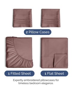 1. JUEGO DE SÁBANAS DE 4 PIEZAS: 2 fundas de almohada y sábana plana y sábana ajustable. Sábana plana (108″ x 102″) Sábana ajustable (80 x 78 ) 2 Fundas de almohada (20 x 40 ).