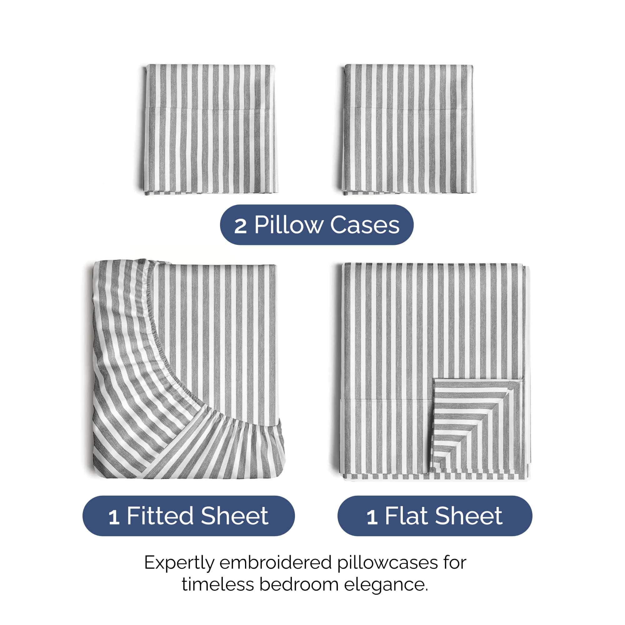 Juego de sábanas King Size de 4 piezas – -Gris Rayas