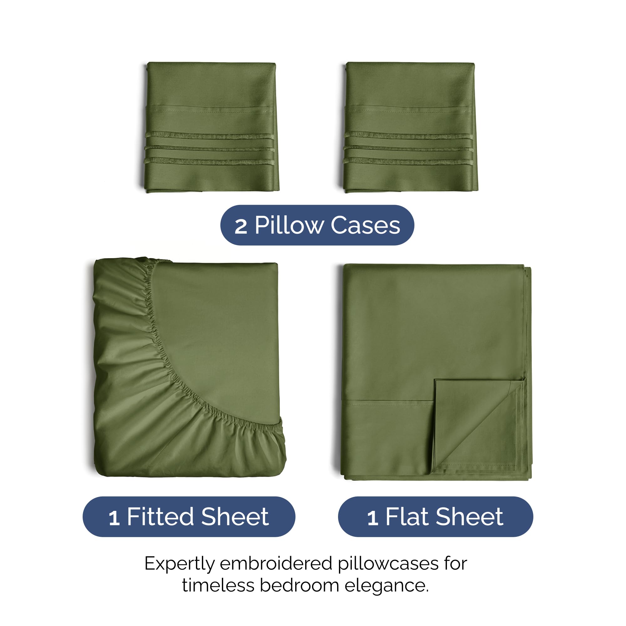 Juego de sábanas King Size de 4 piezas – -Verde Oliva Profun