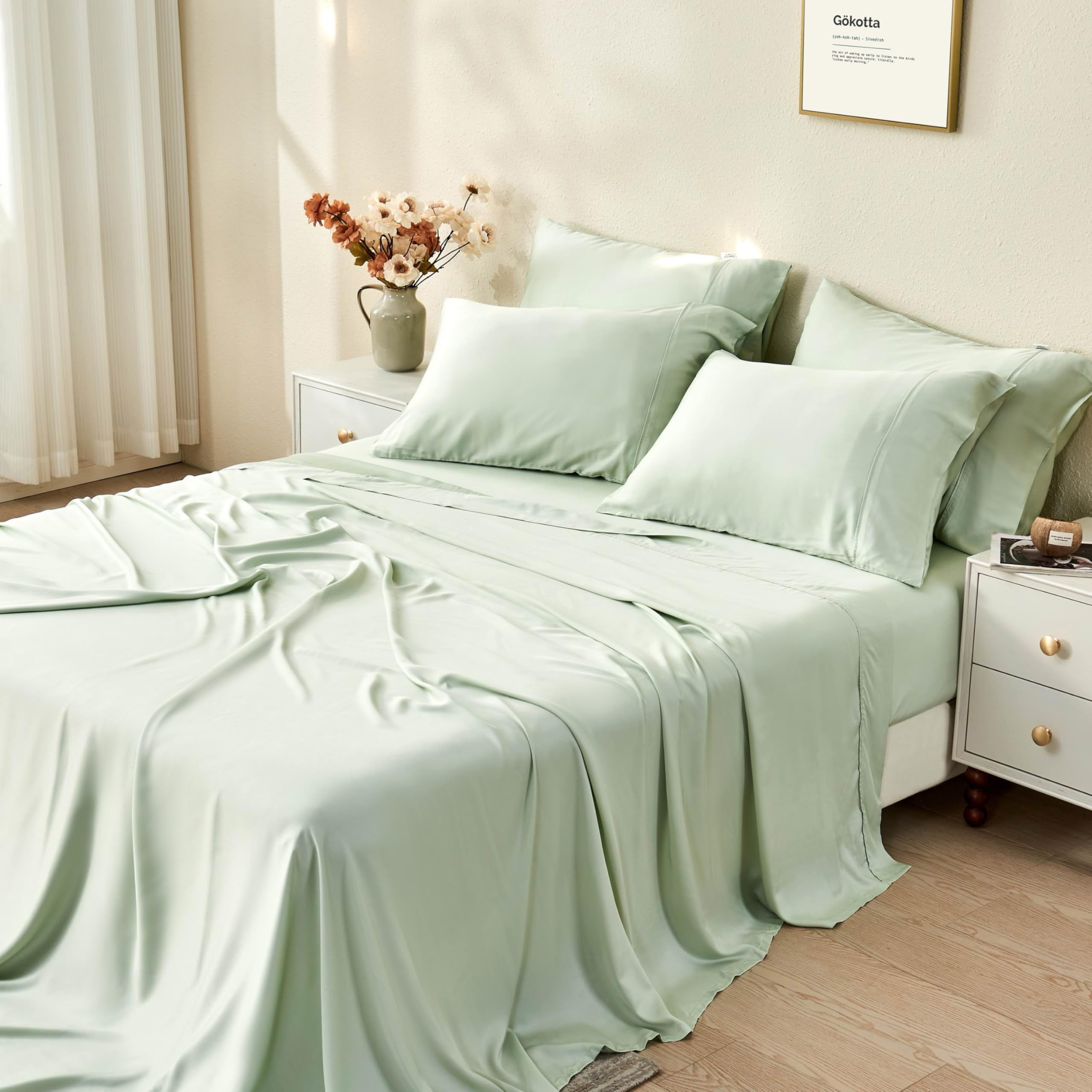 Juego de sábanas King Size GOKOTTA 6 piezas, 100% Rayón