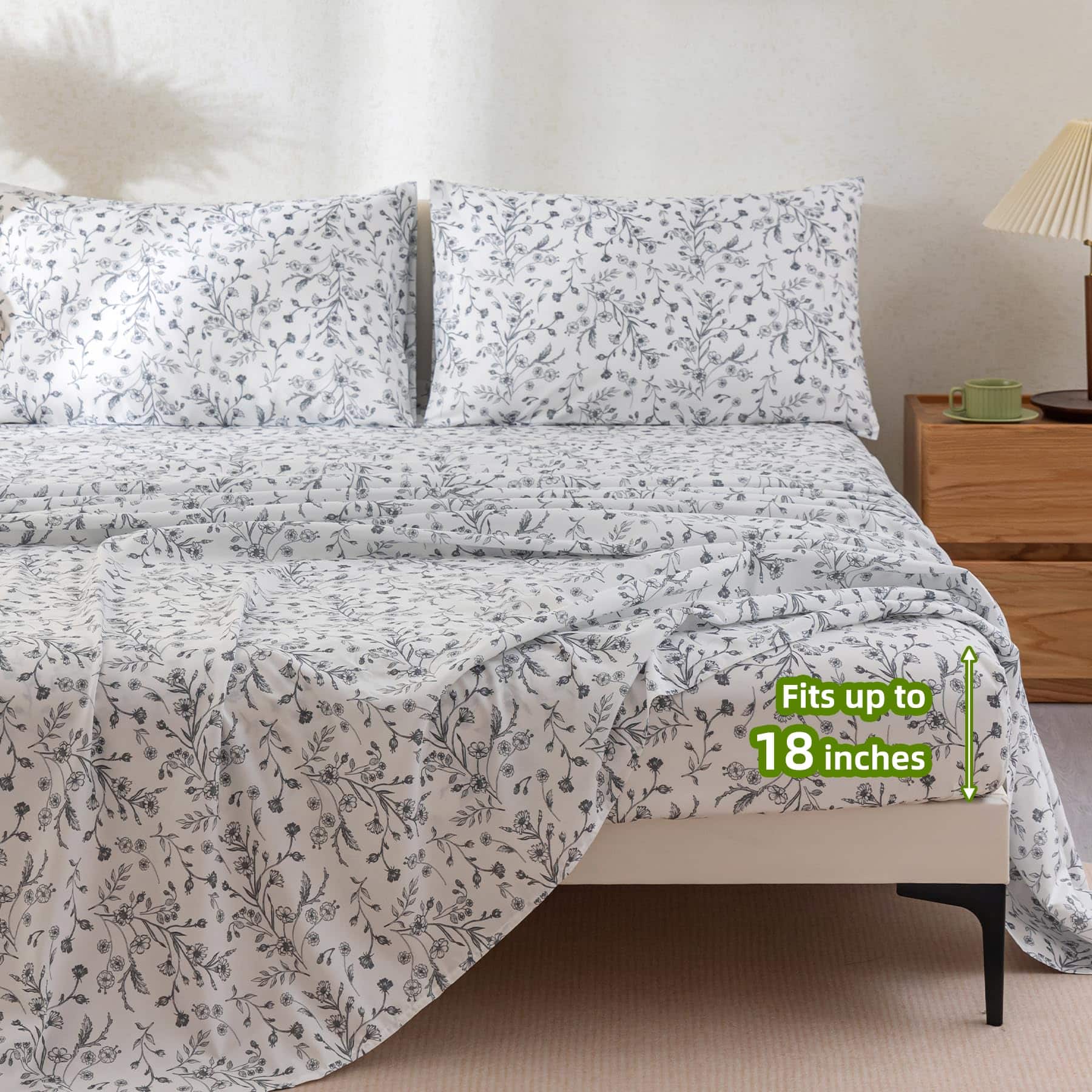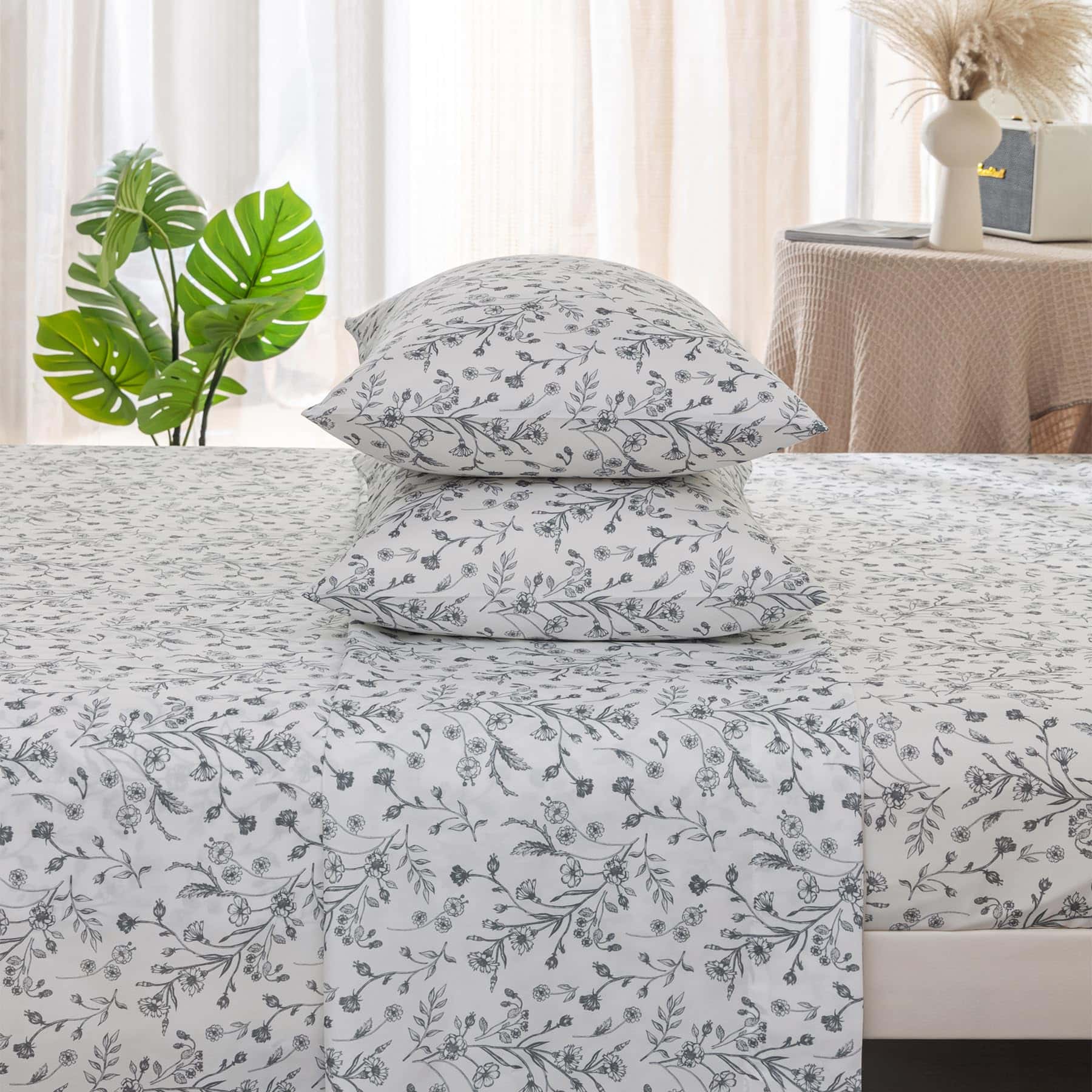 Jessrydo Floral Bed Sheets King Size es la elección perfecta para quienes buscan comodidad y estilo en su dormitorio. Este juego de sábanas king size premium está hecho de microfibra de alta calidad, lo que garantiza una sensación suave y transpirable sobre tu piel. Las sábanas están impresas con hermosos patrones florales que añaden un toque de elegancia a tu dormitorio. El juego incluye una sábana plana, una sábana ajustable con bolsillo profundo y dos fundas de almohada, todo lo que necesitas para una cama lujosa y cómoda.